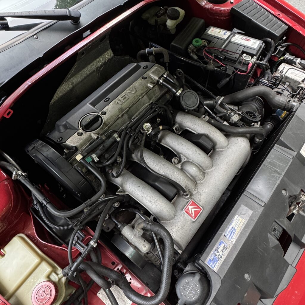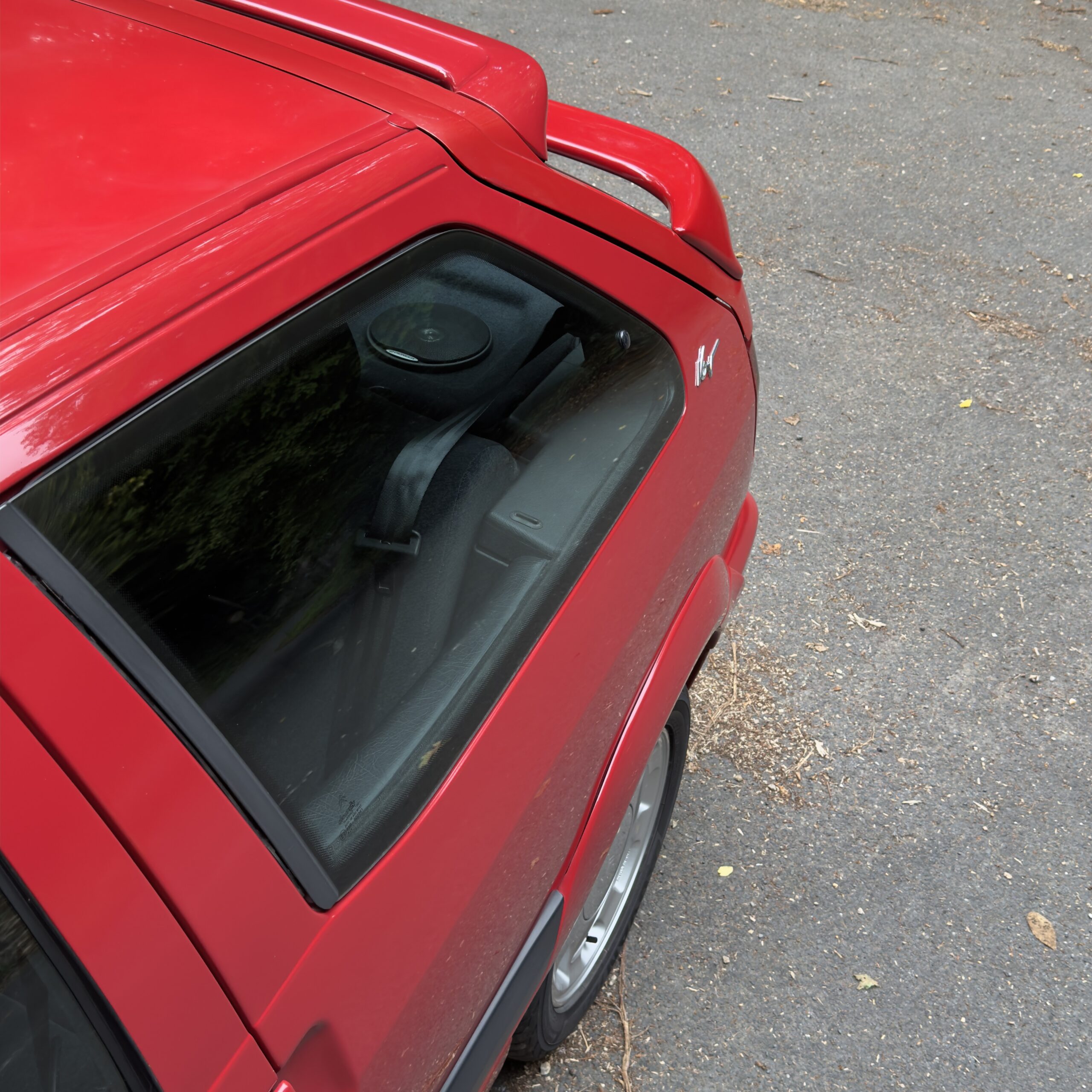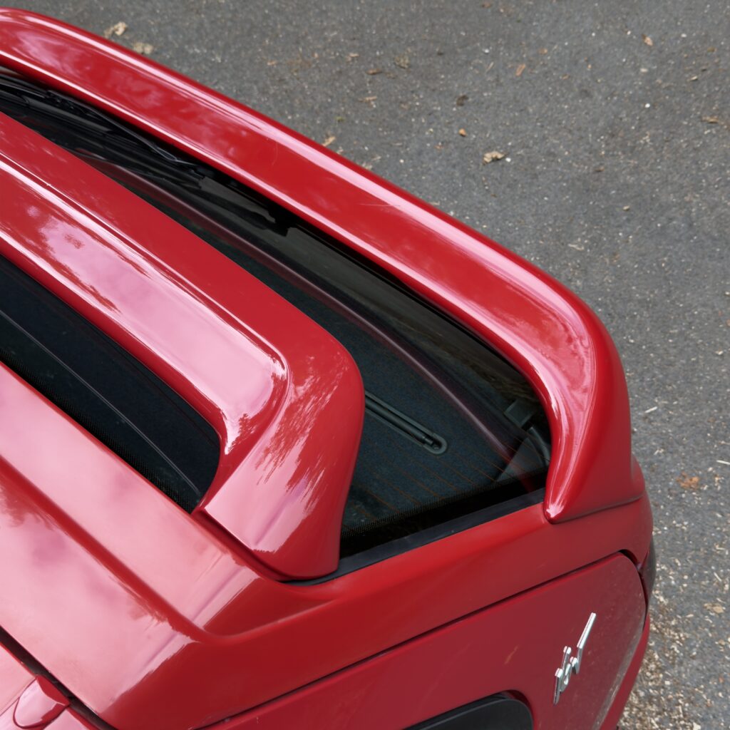 La carrosserie, dans sa teinte Rouge Lucifer, présente bien et conserve un bel éclat, quelques défauts mineurs sont à notés, ceux-ci pourront faire l'objet d'une reprise en carrosserie.