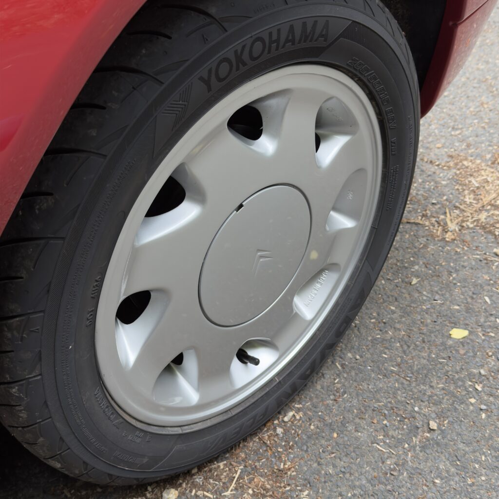 Les jantes sont en parfait état et chaussées de pneus Yokohama en très bon état.