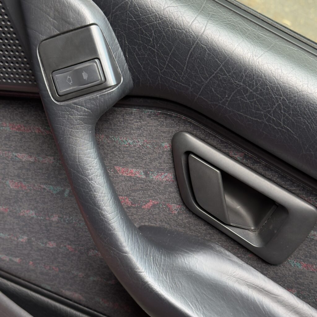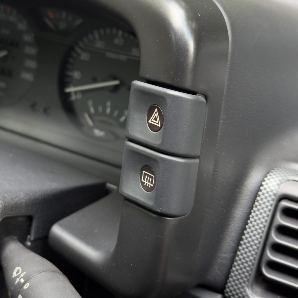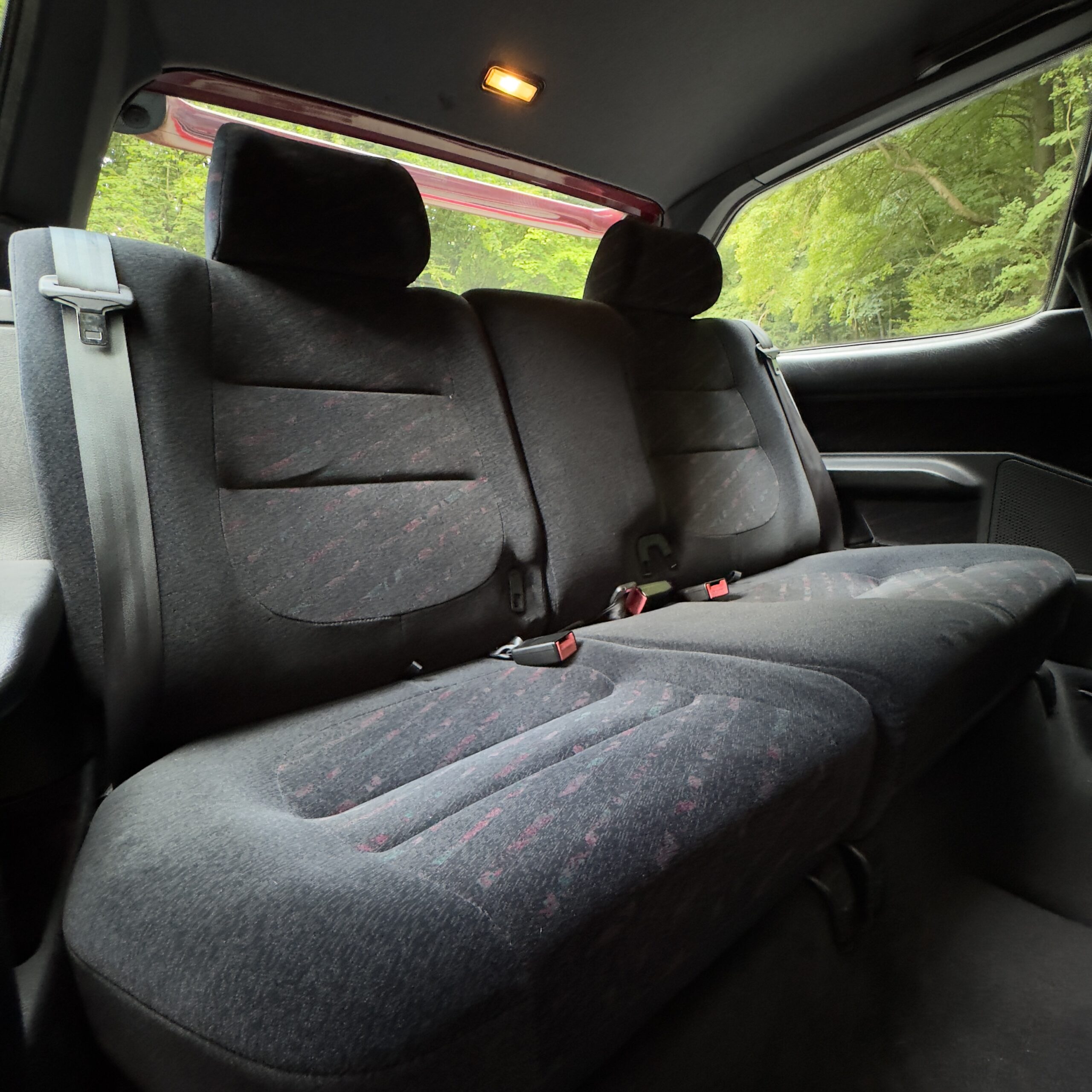 L’intérieur d’origine est très bien conservé. La sellerie tissu noire à motifs rouge et bleus est bien conservée pour le kilométrage de la voiture, le ciel de toit est propre, et le tableau de bord ainsi que le reste de l'habitacle sont en très bon état.