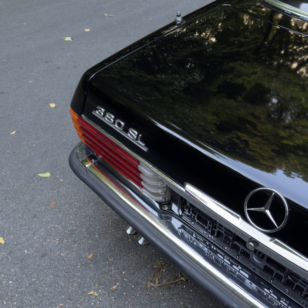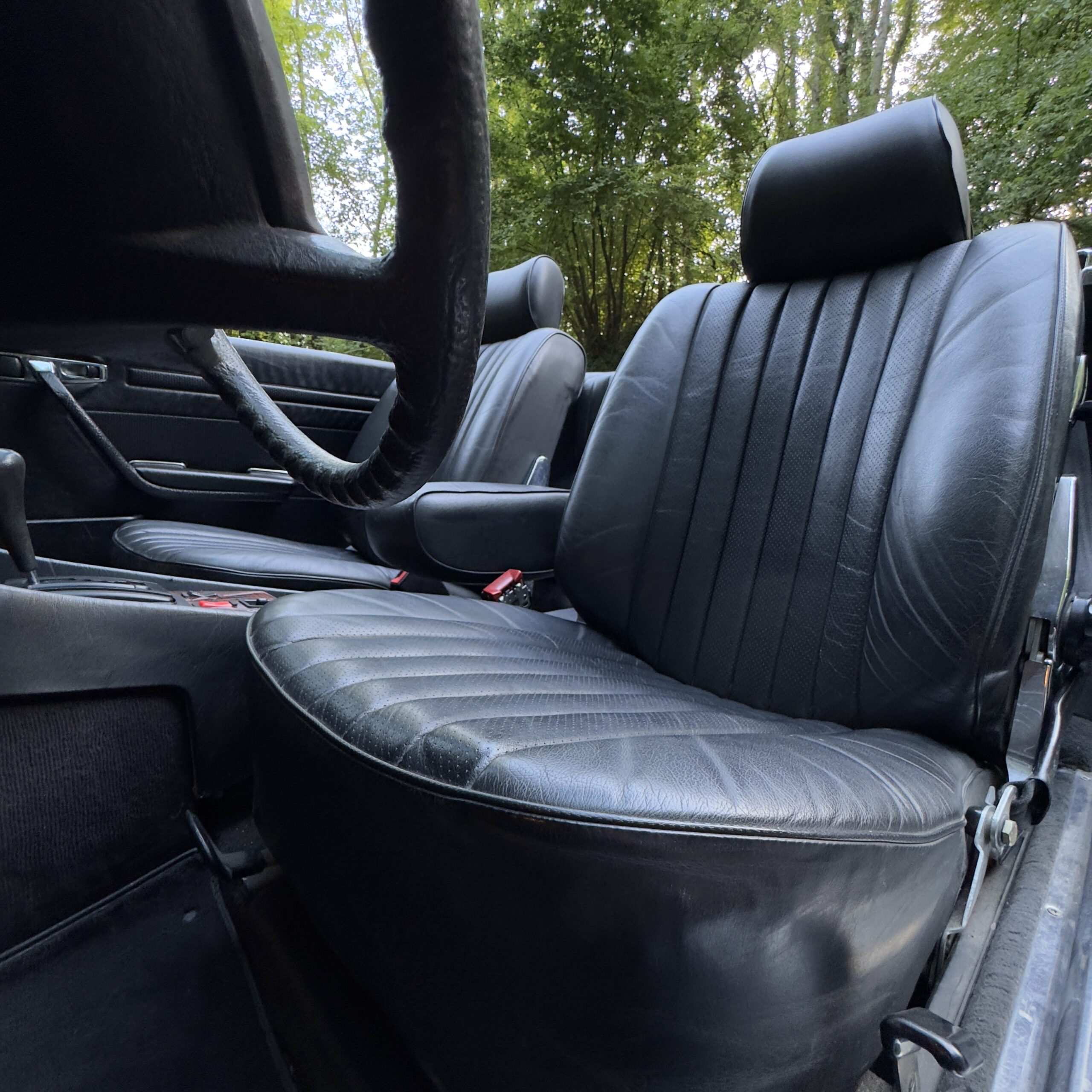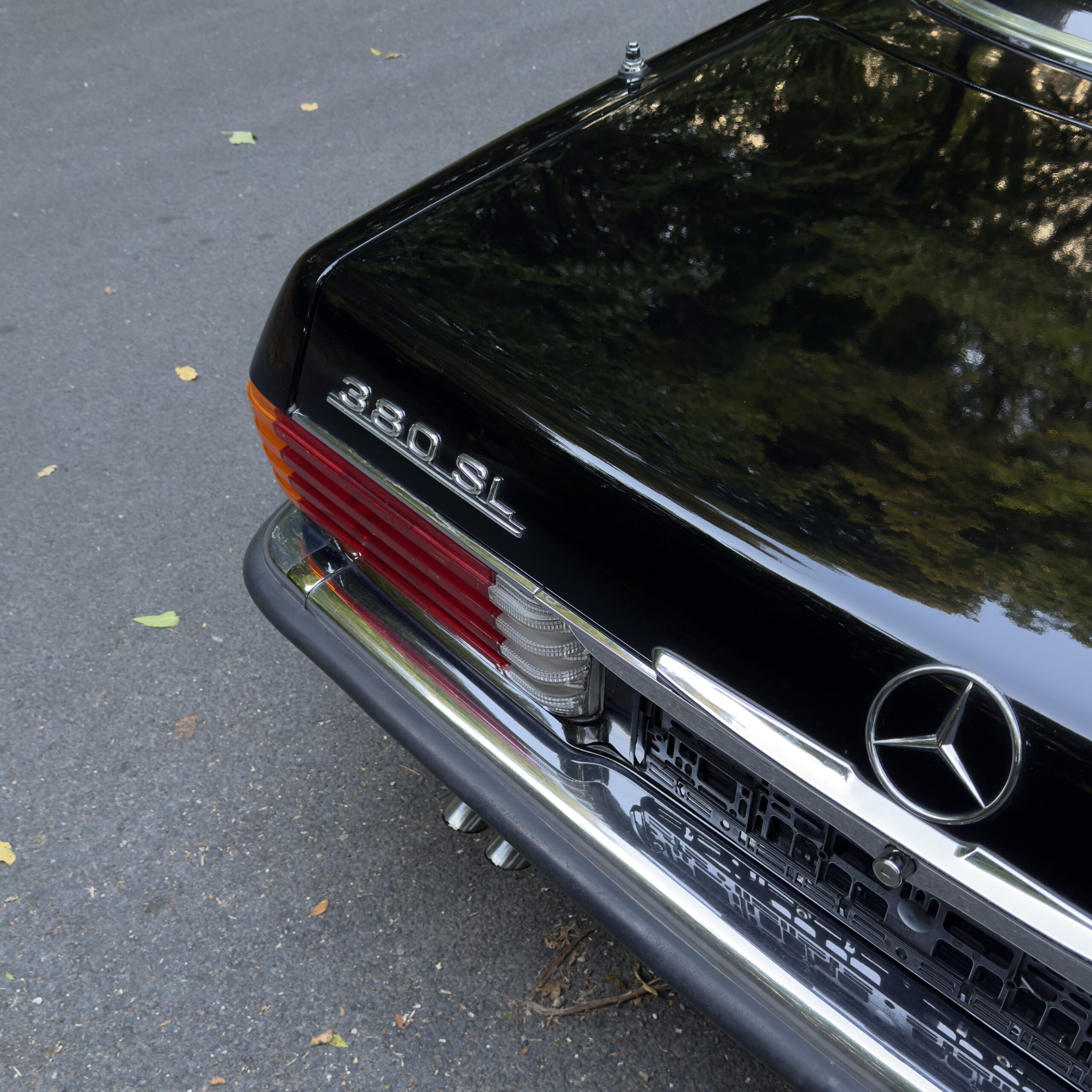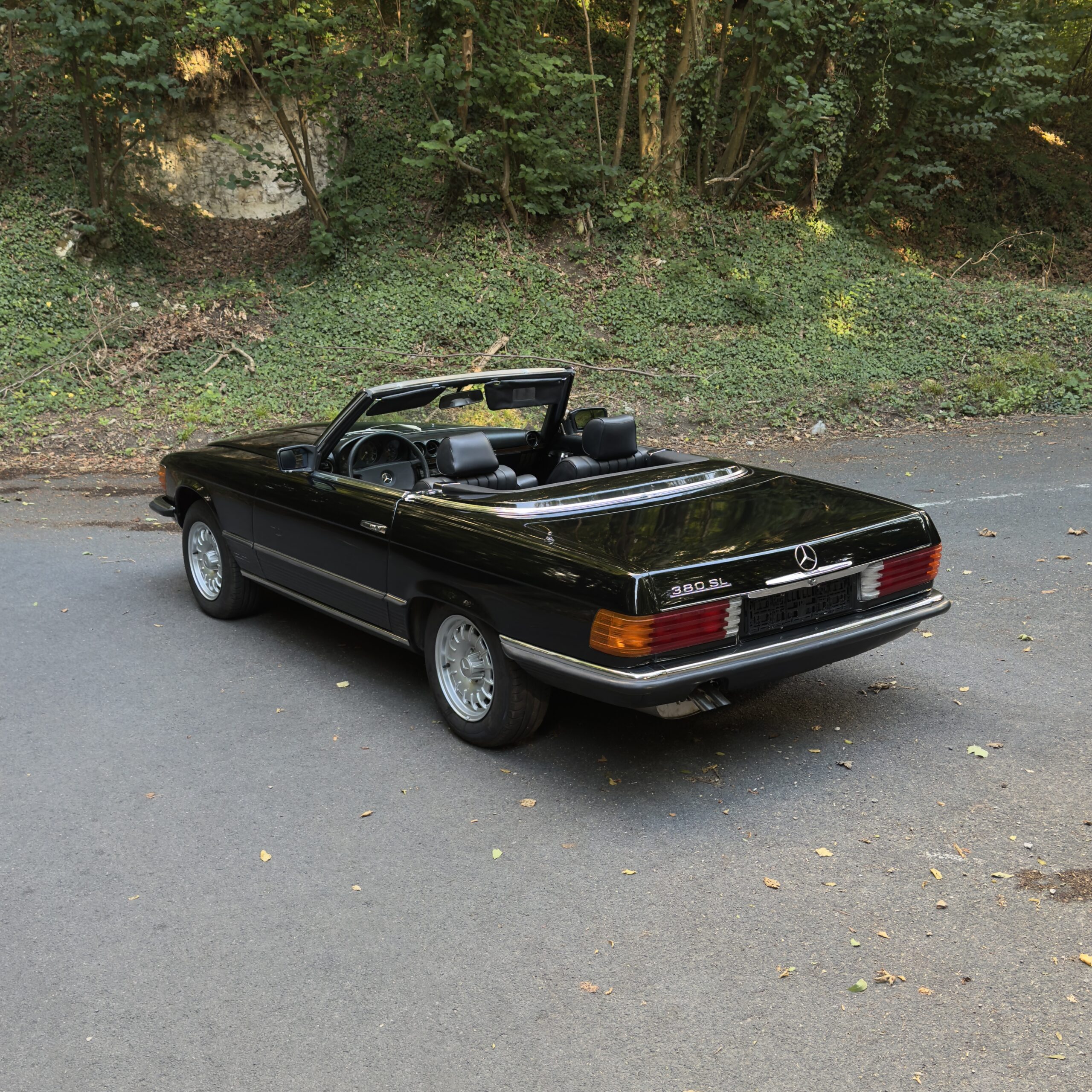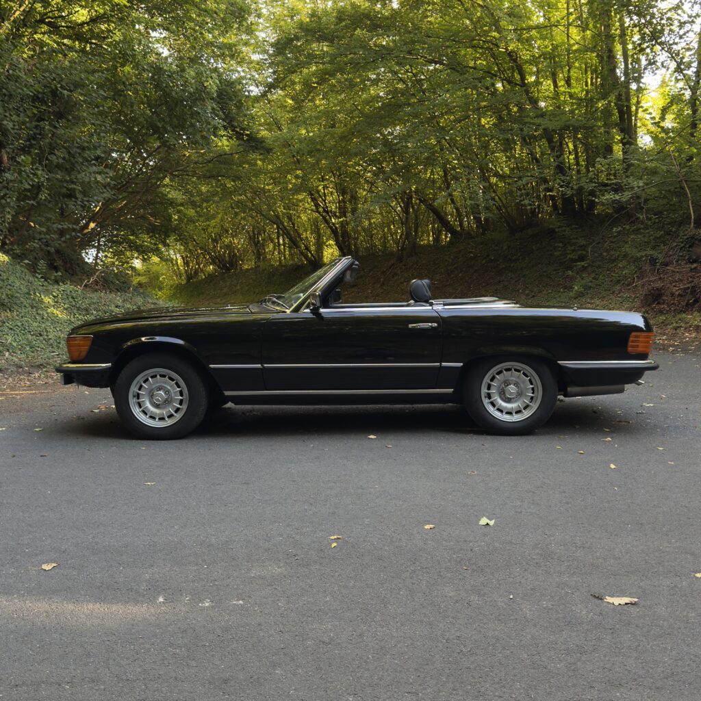 L’Atelier des 1000 a le plaisir de vous présenter cette élégante Mercedes-Benz 380 SL R107, proposée dans une configuration triple black particulièrement rare et élégante.
