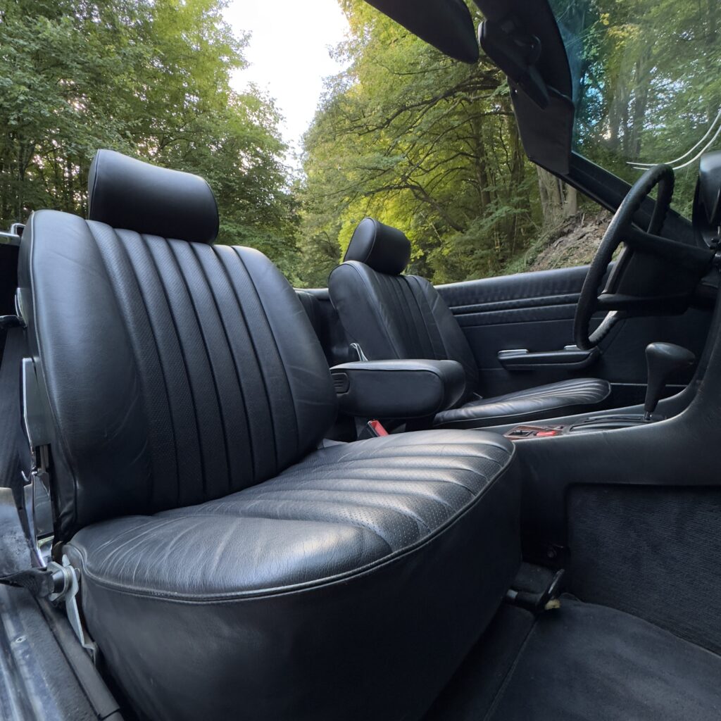 La sellerie cuir noir est en superbe état, tout comme les boiseries Zebrano.