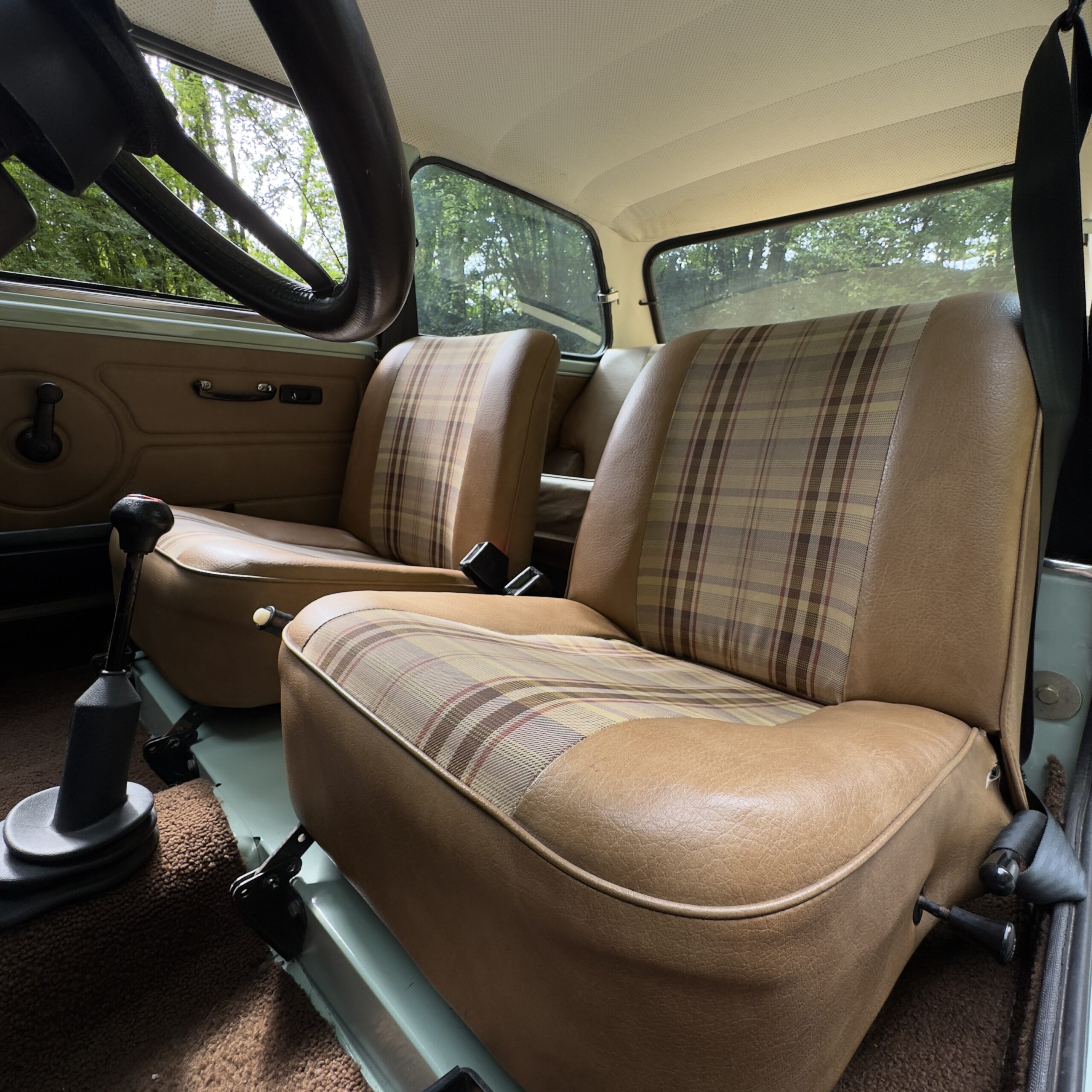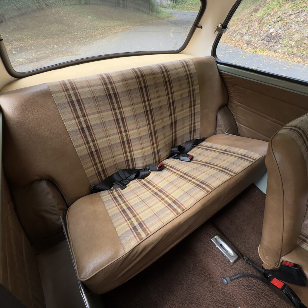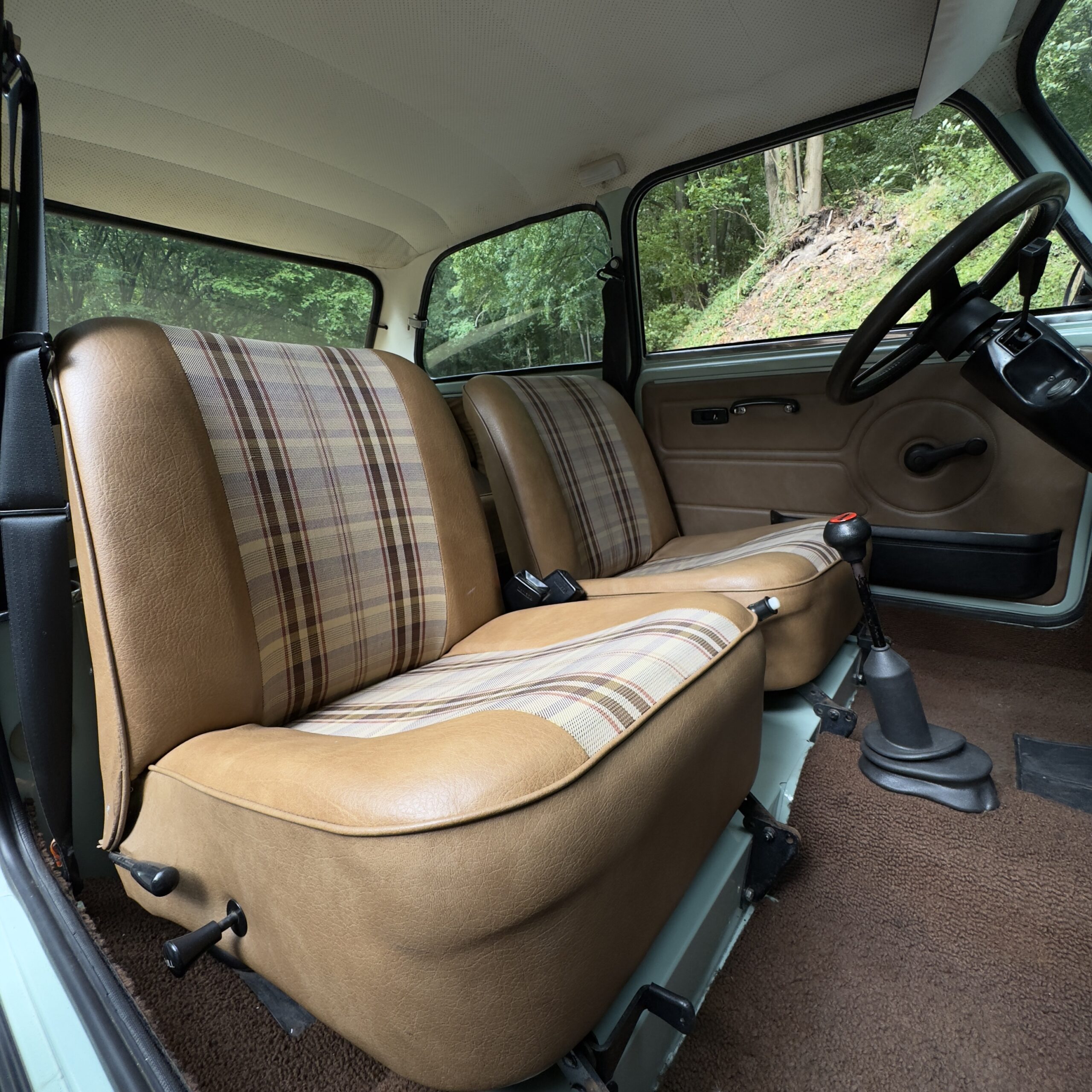 À l’intérieur, la sellerie Deckhair spécifique aux version high line est en très bel état et nous plonge dans l’ambiance des années 80 avec charme et authenticité. Les moquettes, garnitures et ciel de pavillon sont parfaitement préservés.