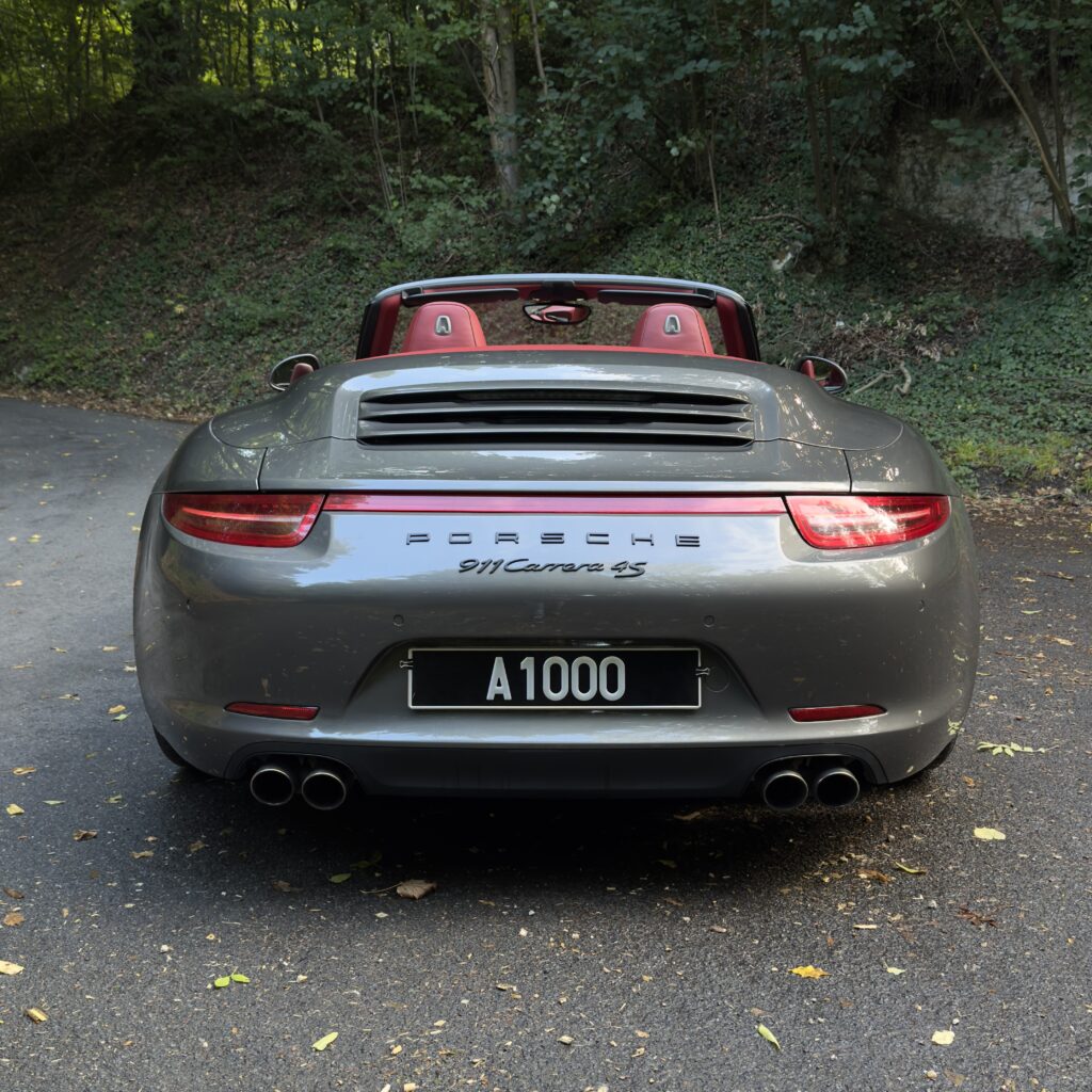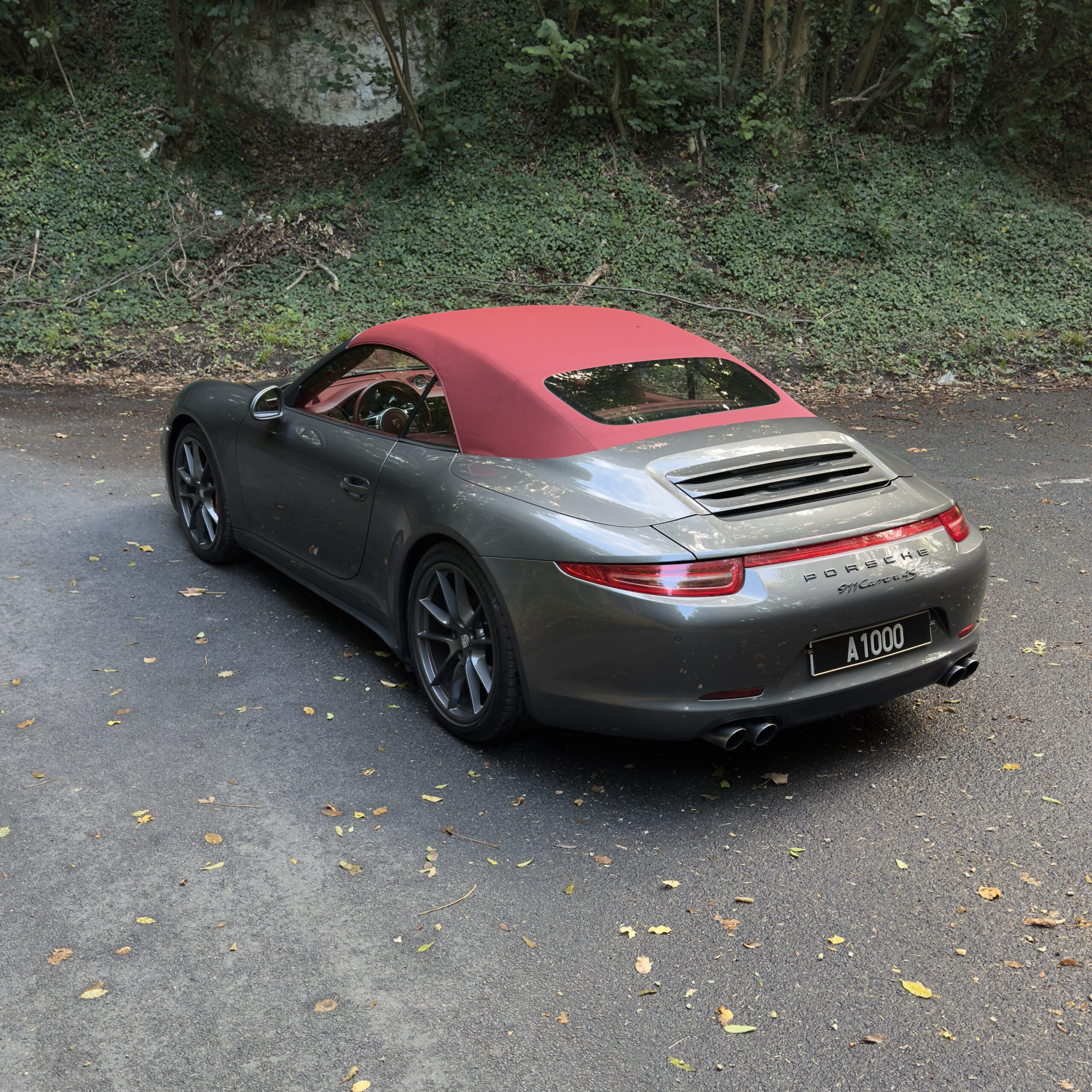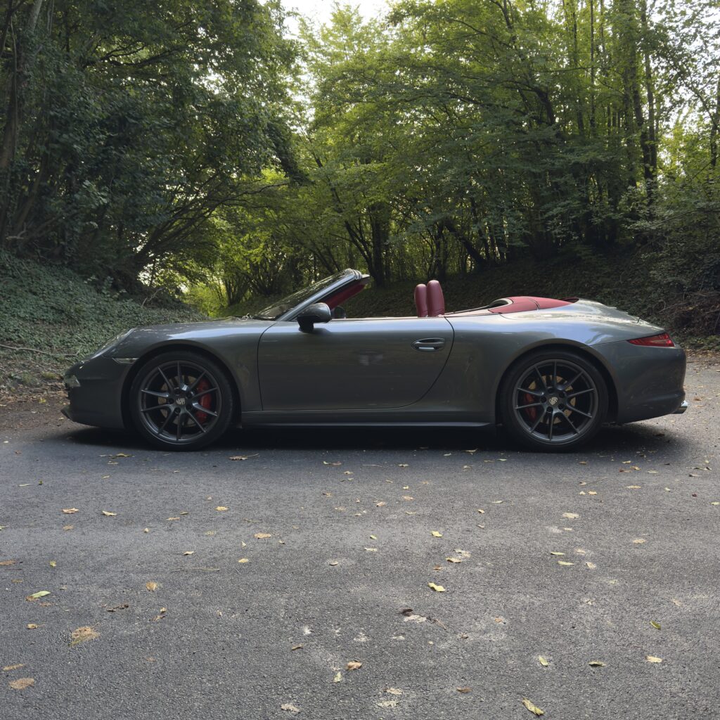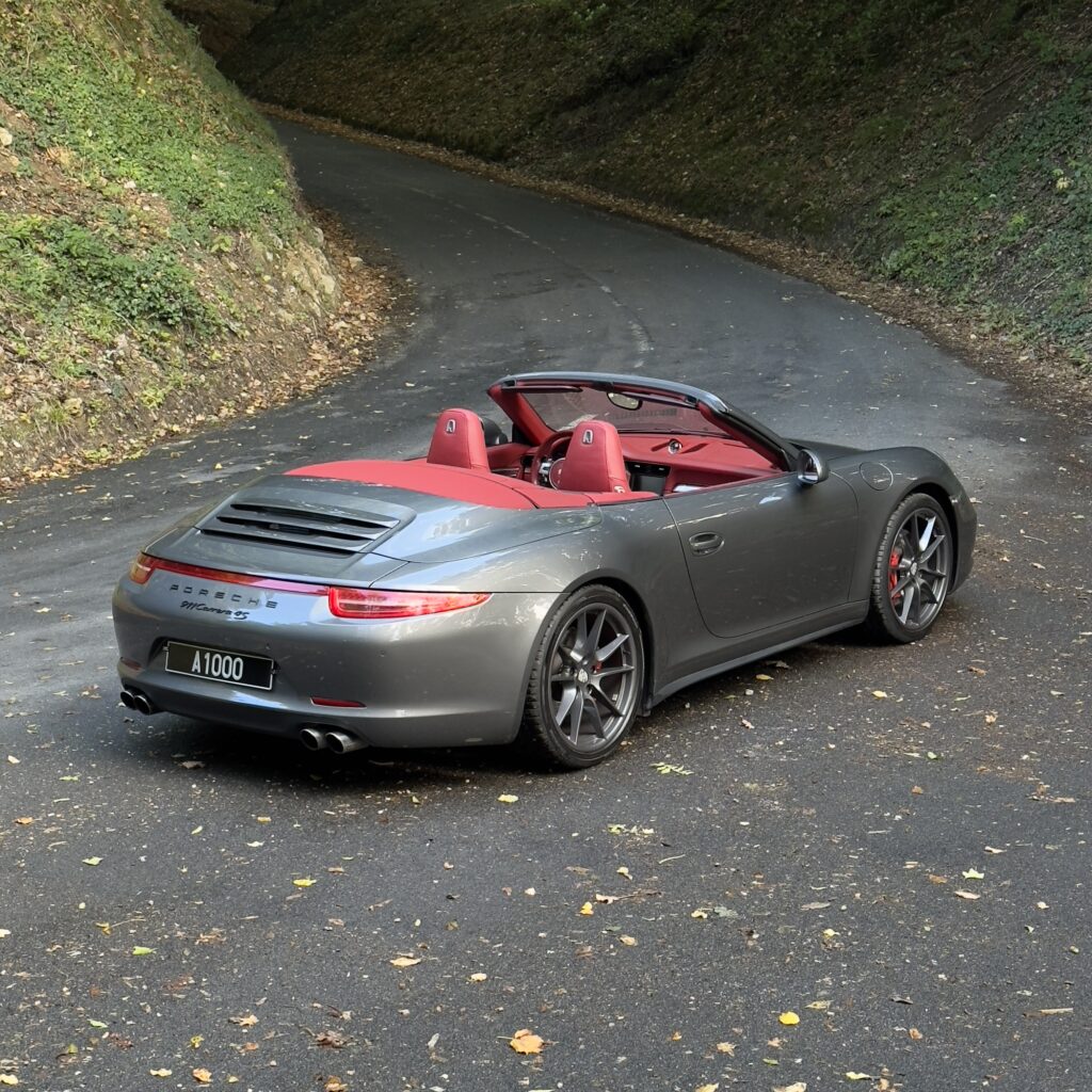 L’Atelier des 1000 a le plaisir de vous présenter aujourd’hui à la vente cette magnifique Porsche 911 Type 991.1 Carrera 4S Cabriolet, dans une configuration aussi originale que séduisante, avec sa robe Agath Grey Metallic, son intérieur en cuir étendu Rouge avec sa capote assortie.