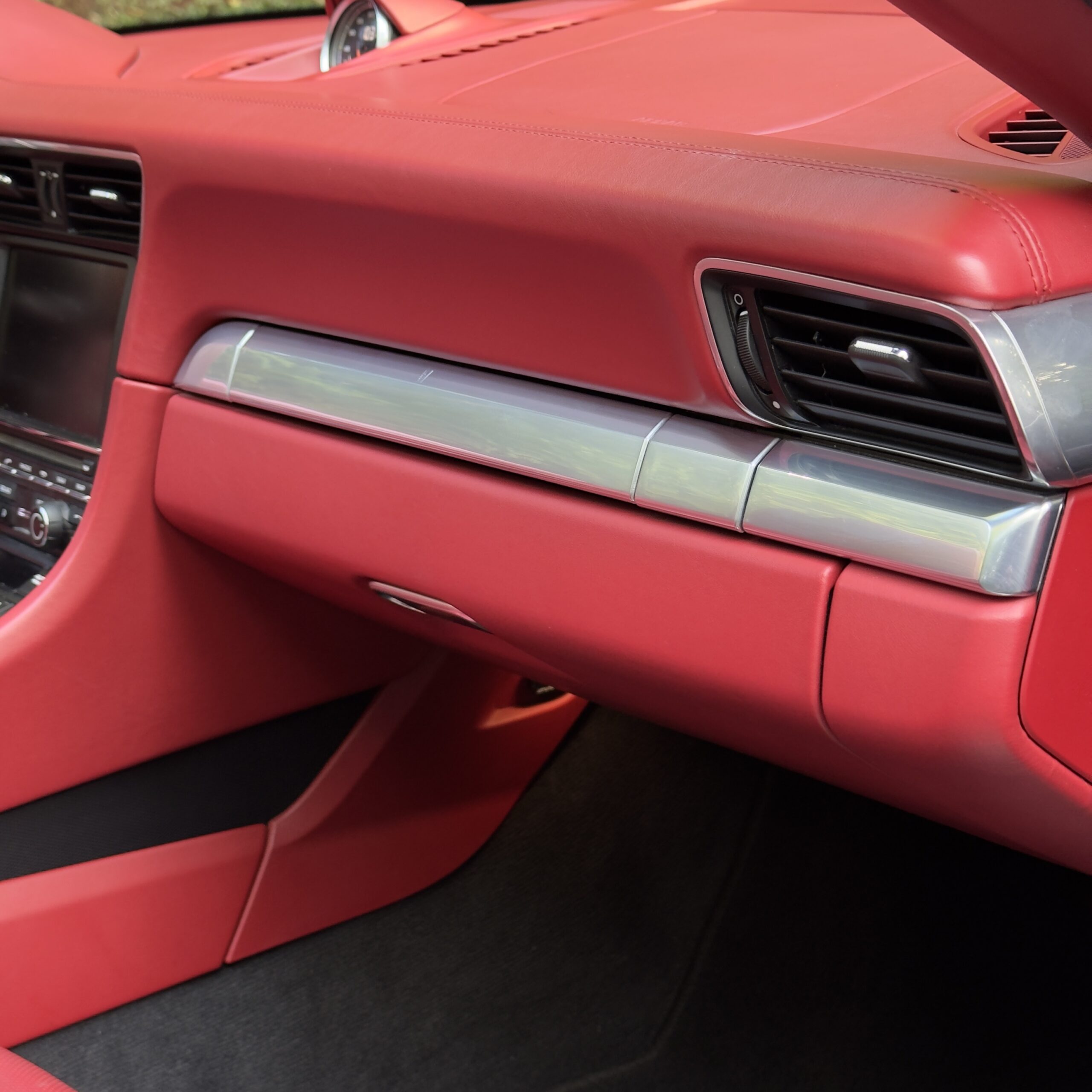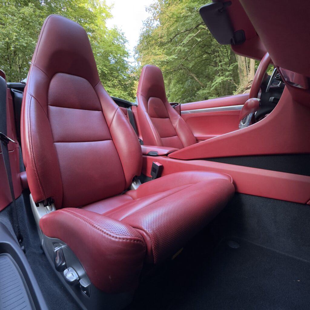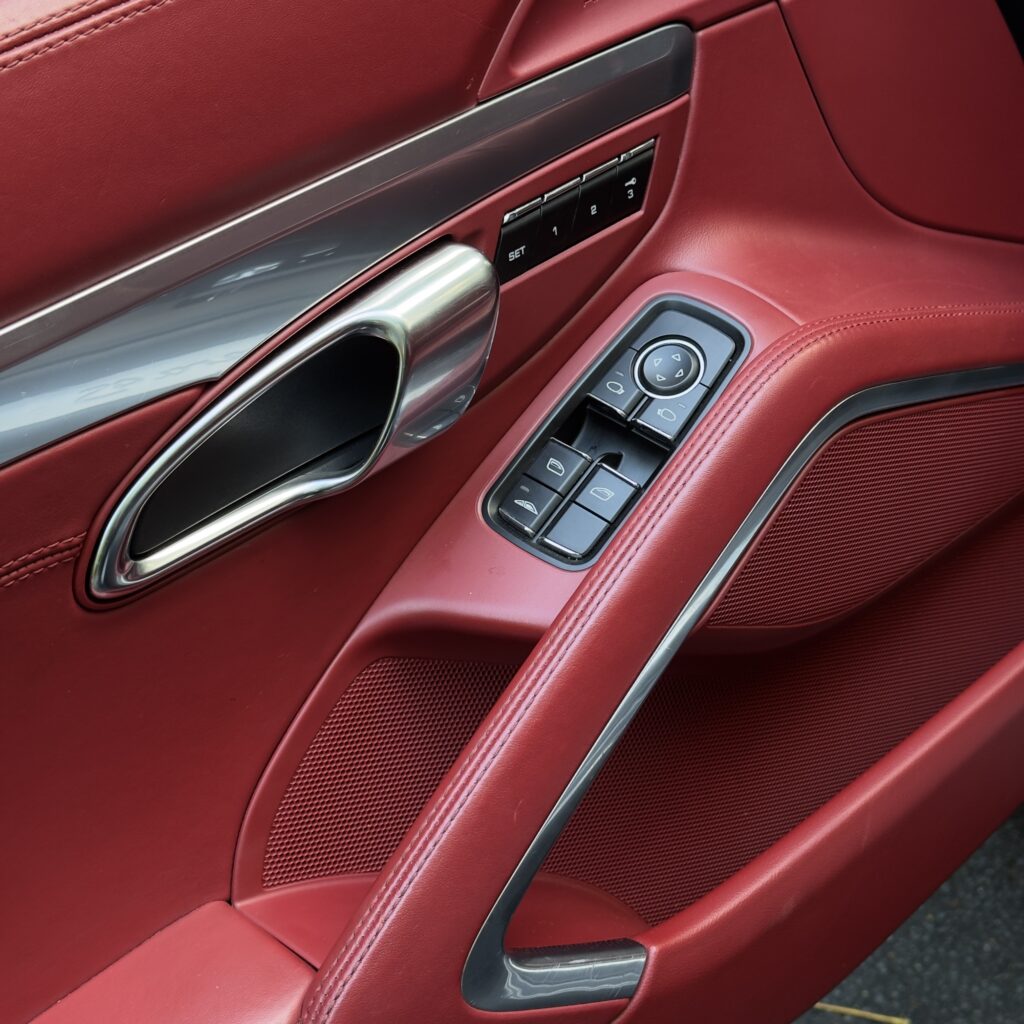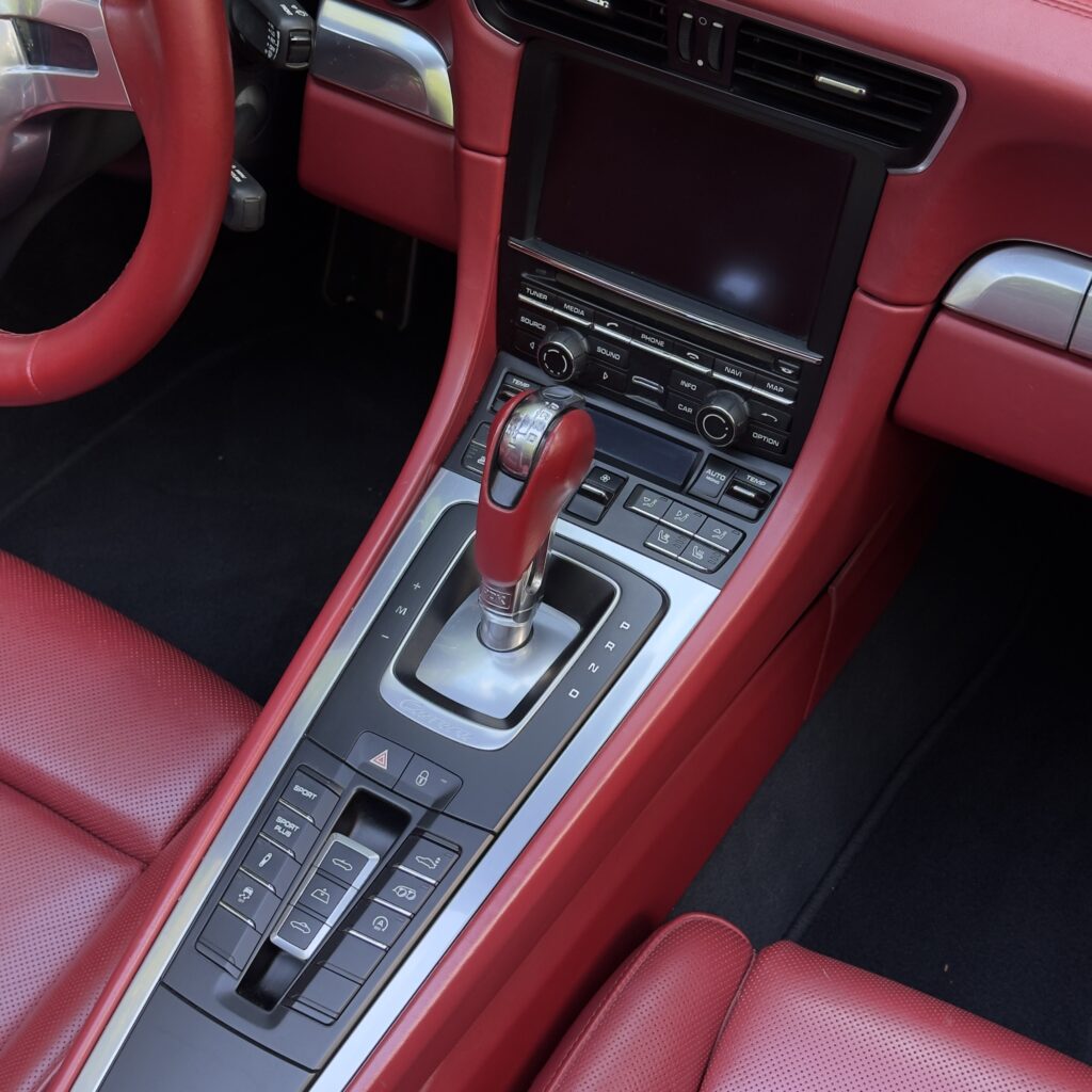 Sa configuration originale, associant une teinte extérieure sobre et élégante à un habitacle flamboyant en cuir rouge étendu, lui confère une identité unique. L’alliance entre le sérieux du gris métallisé et l’audace du rouge intérieur souligne le raffinement de la finition Porsche, tout en rendant cet exemplaire particulièrement désirable et exclusif.