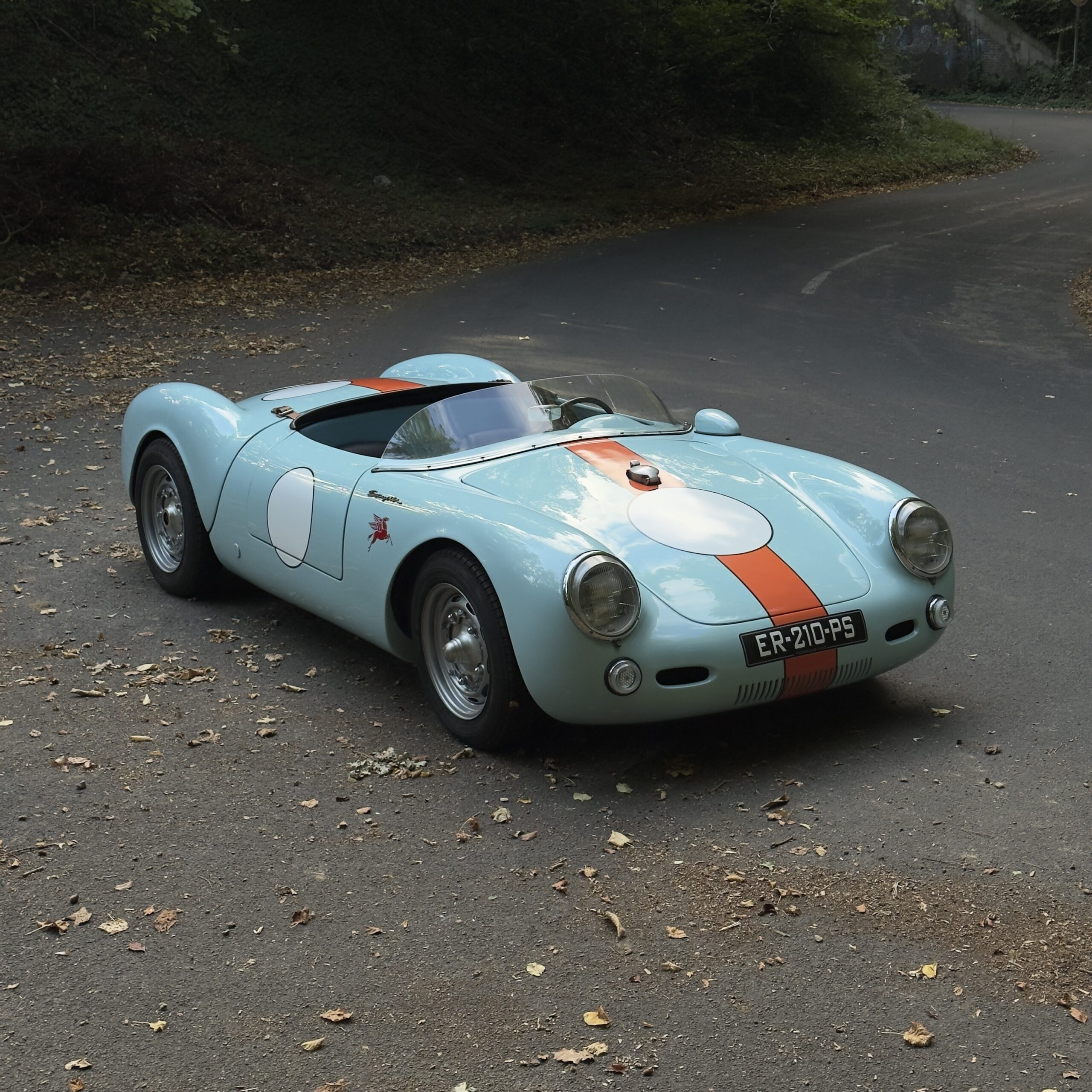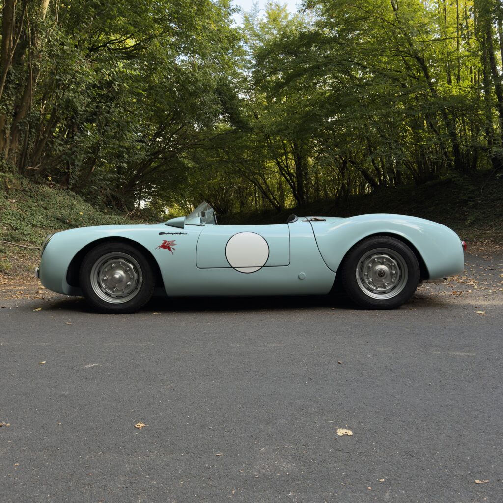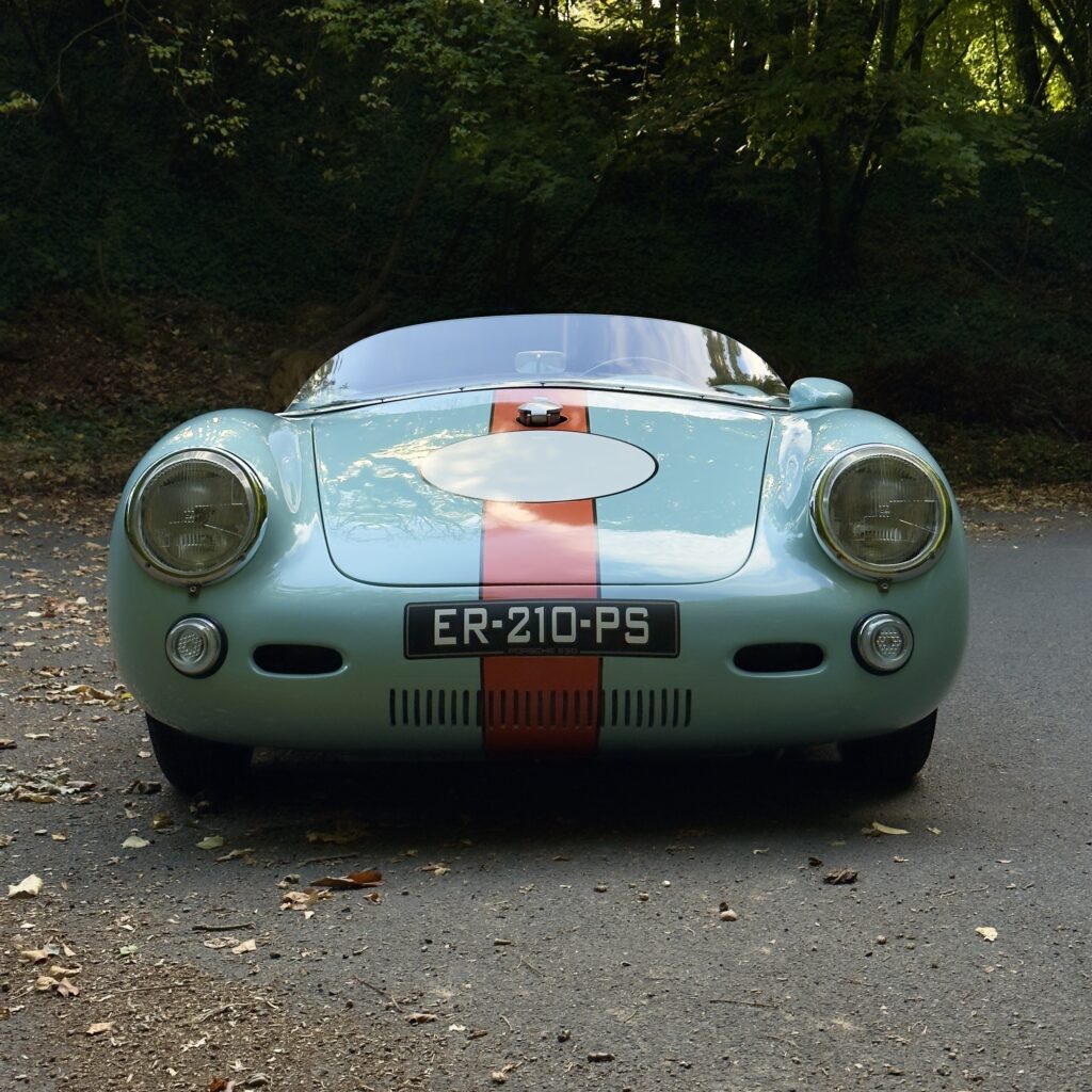 Icône absolue des années 50, la Porsche 550 Spyder a marqué l’histoire du sport automobile. Dès son lancement en 1953, elle s’impose par sa légèreté et son efficacité redoutable, remportant des victoires de catégorie aux 24 Heures du Mans, à la Targa Florio ou encore à la Carrera Panamericana.