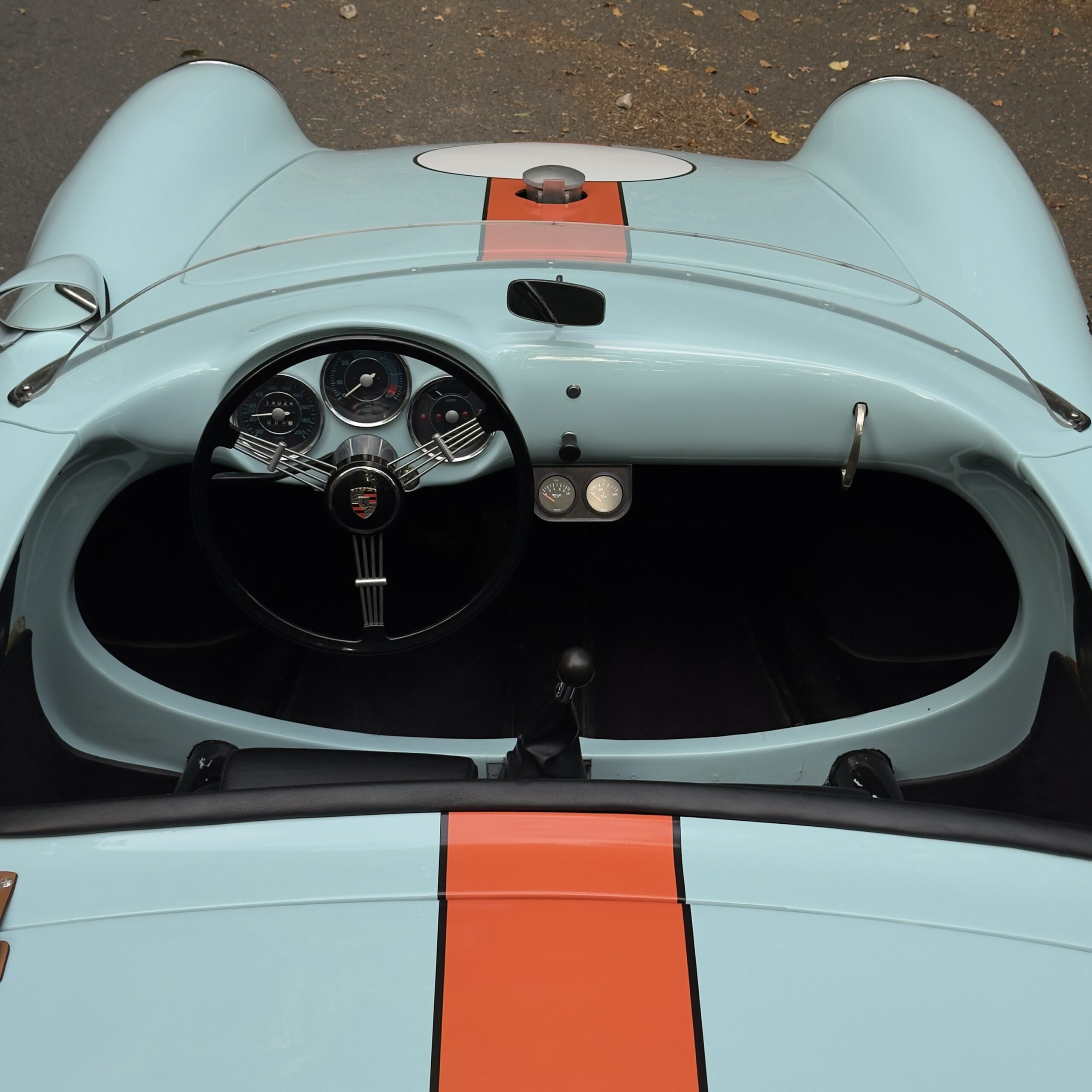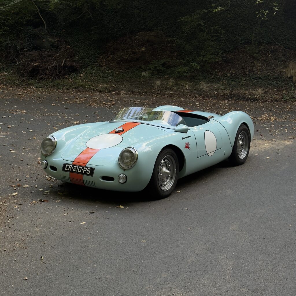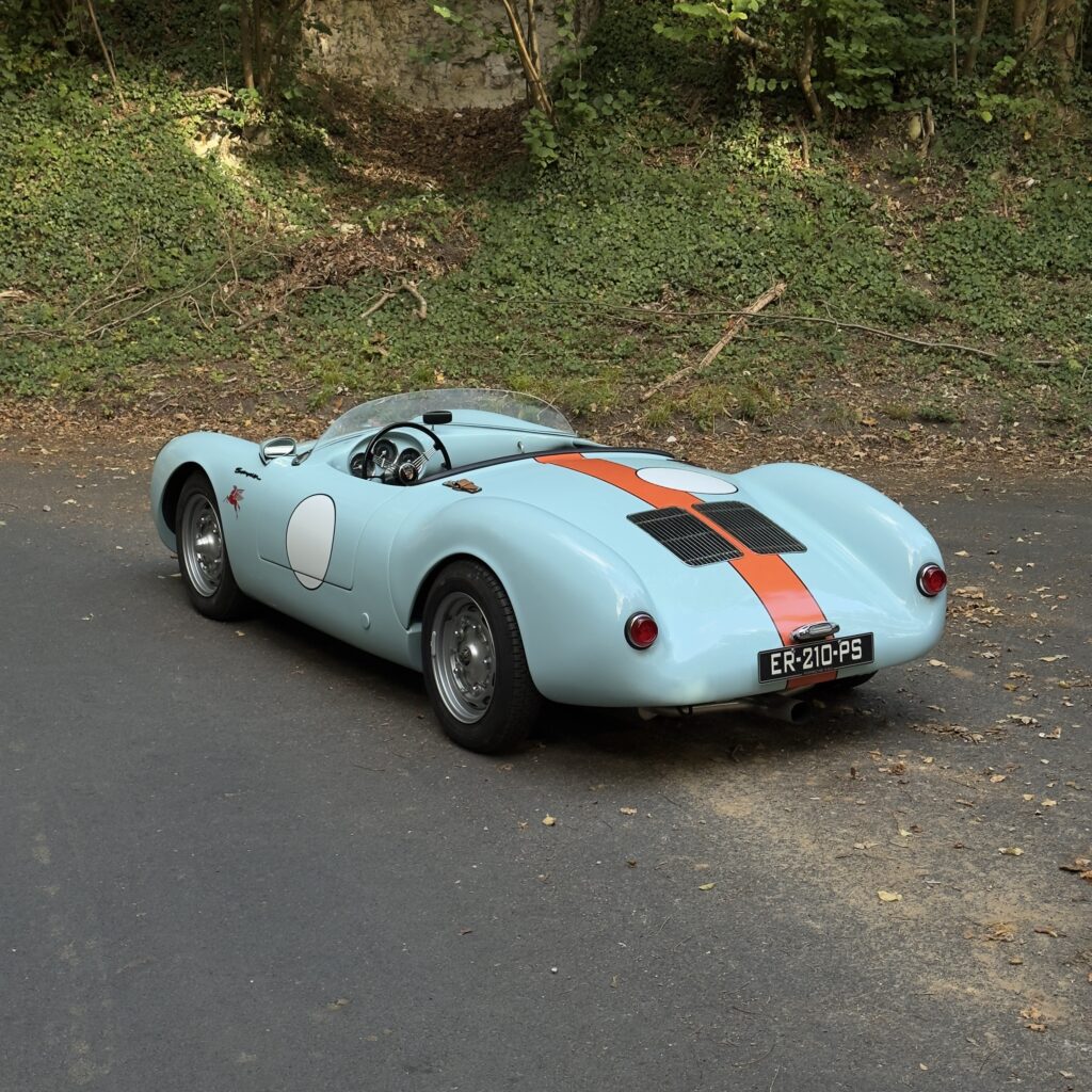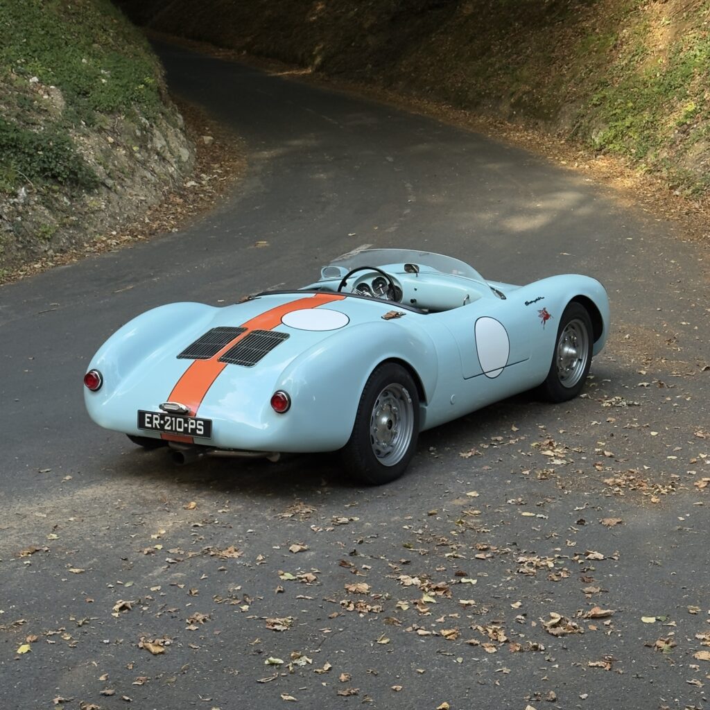 Icône absolue des années 50, la Porsche 550 Spyder a marqué l’histoire du sport automobile. Dès son lancement en 1953, elle s’impose par sa légèreté et son efficacité redoutable, remportant des victoires de catégorie aux 24 Heures du Mans, à la Targa Florio ou encore à la Carrera Panamericana.