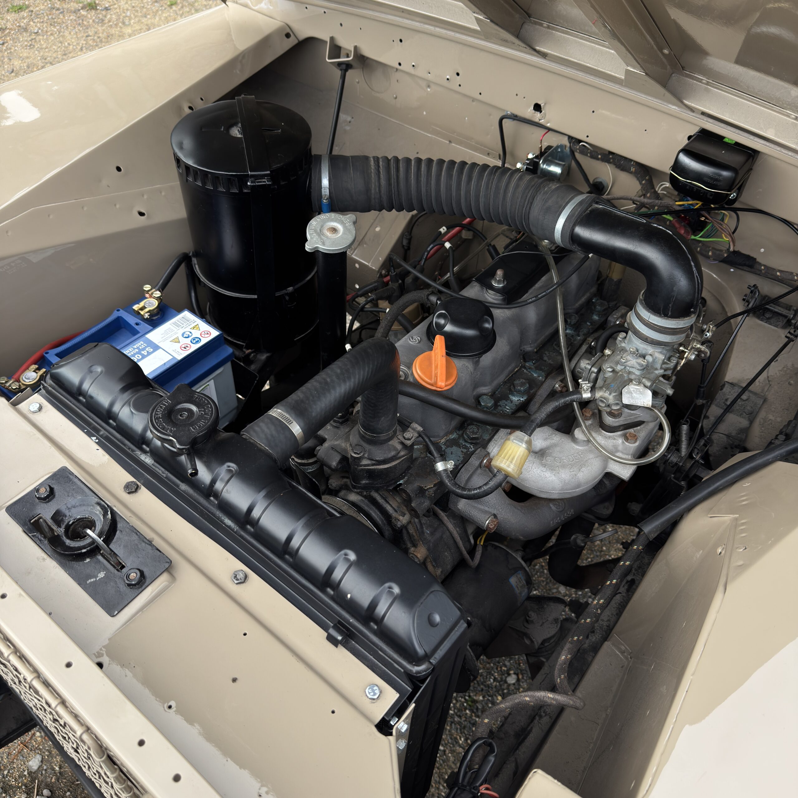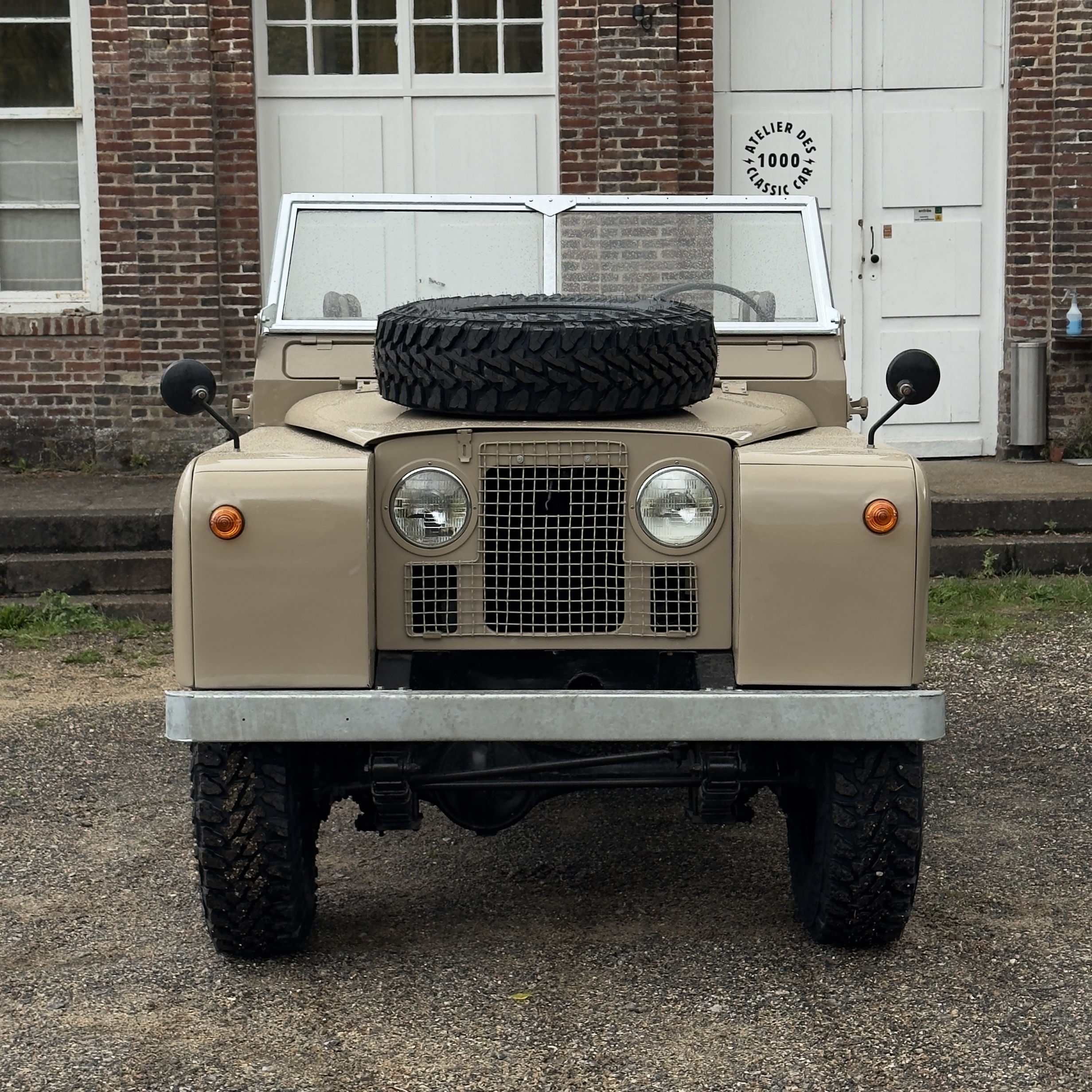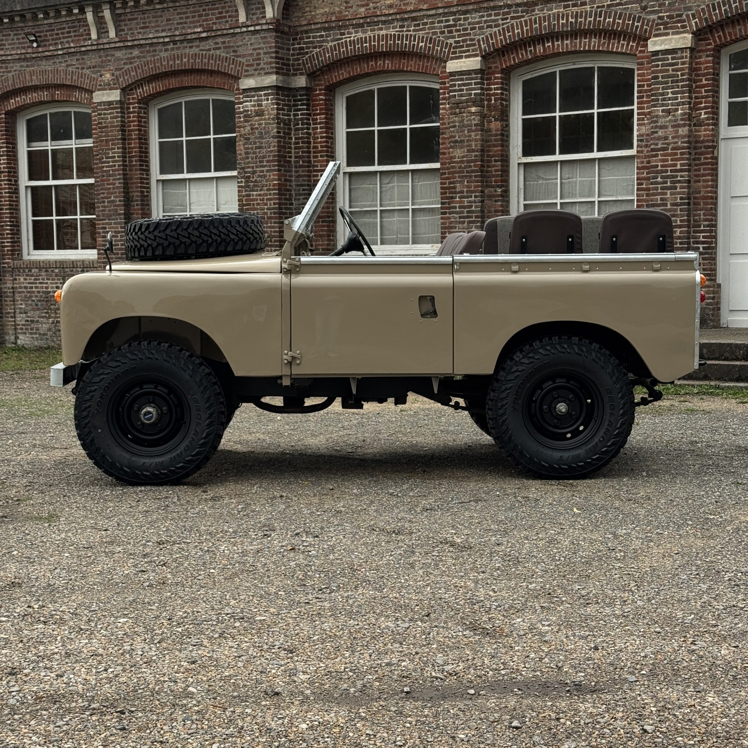 Avec cette teinte Sand, sa sellerie en cuir véritable Brown & Tweed et ses jantes Wolf noires chaussées de pneus de 285 , ce Serie 2A à été réstauré dans la plus pure tradition Land Rover tout en accentuant son look de baroudeur chic.
