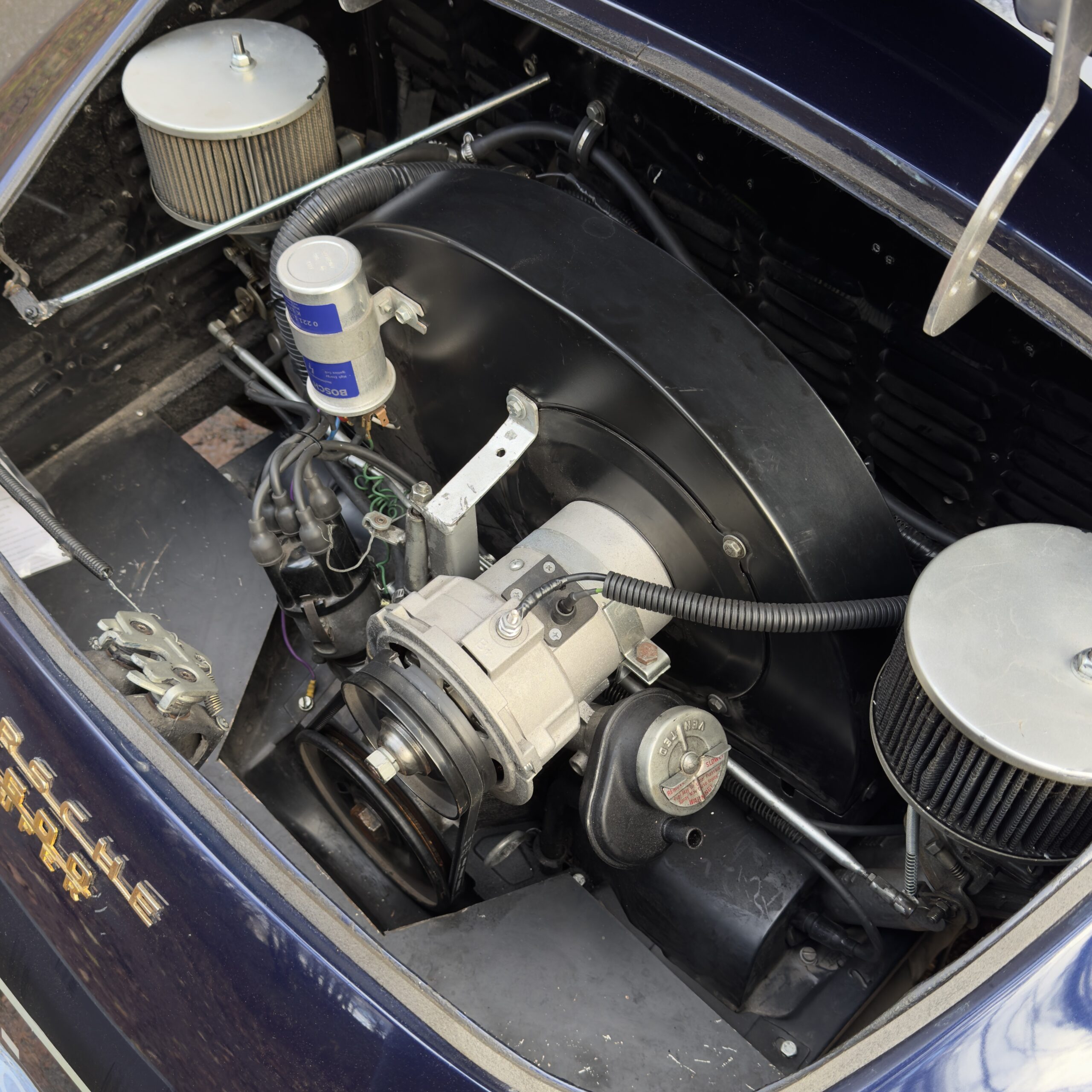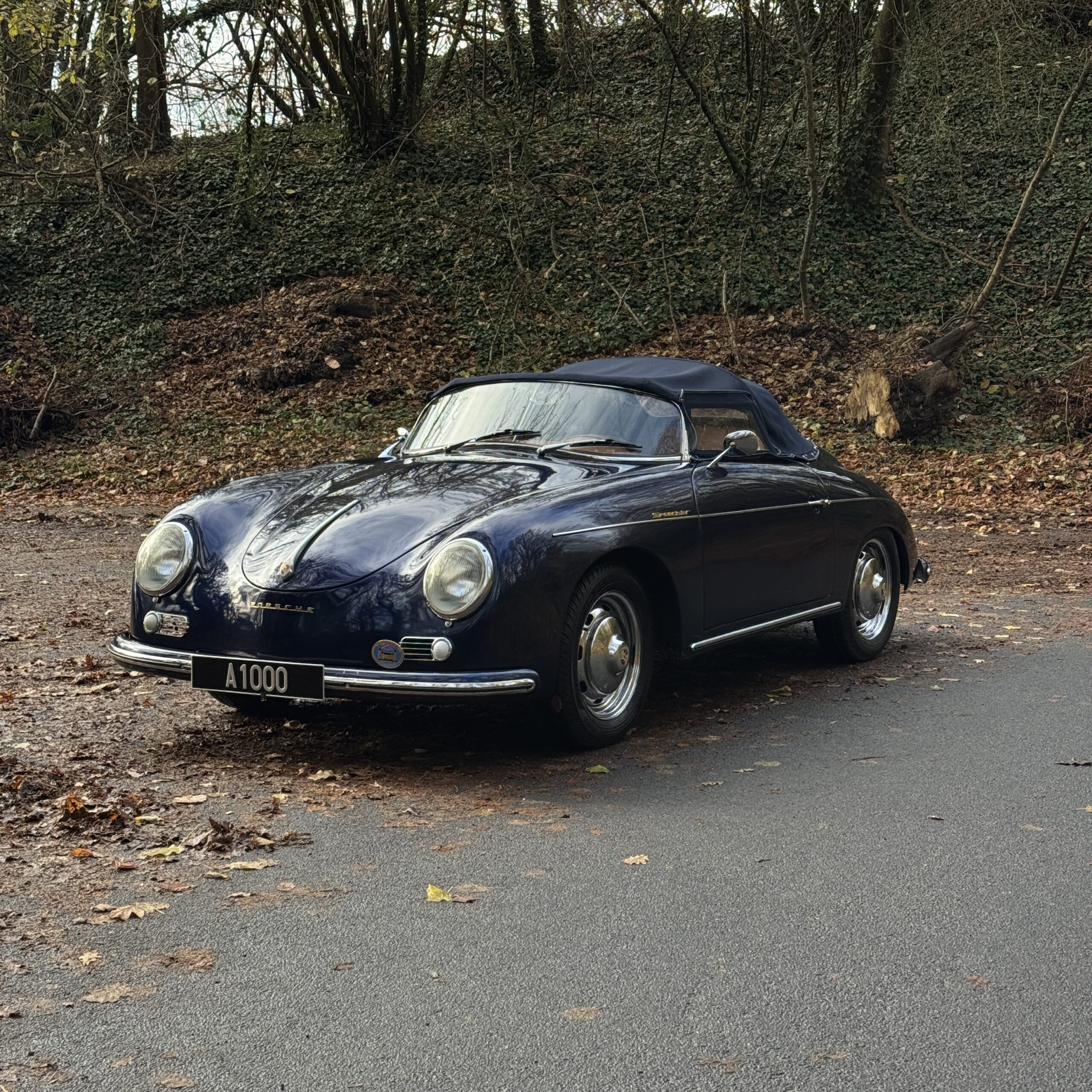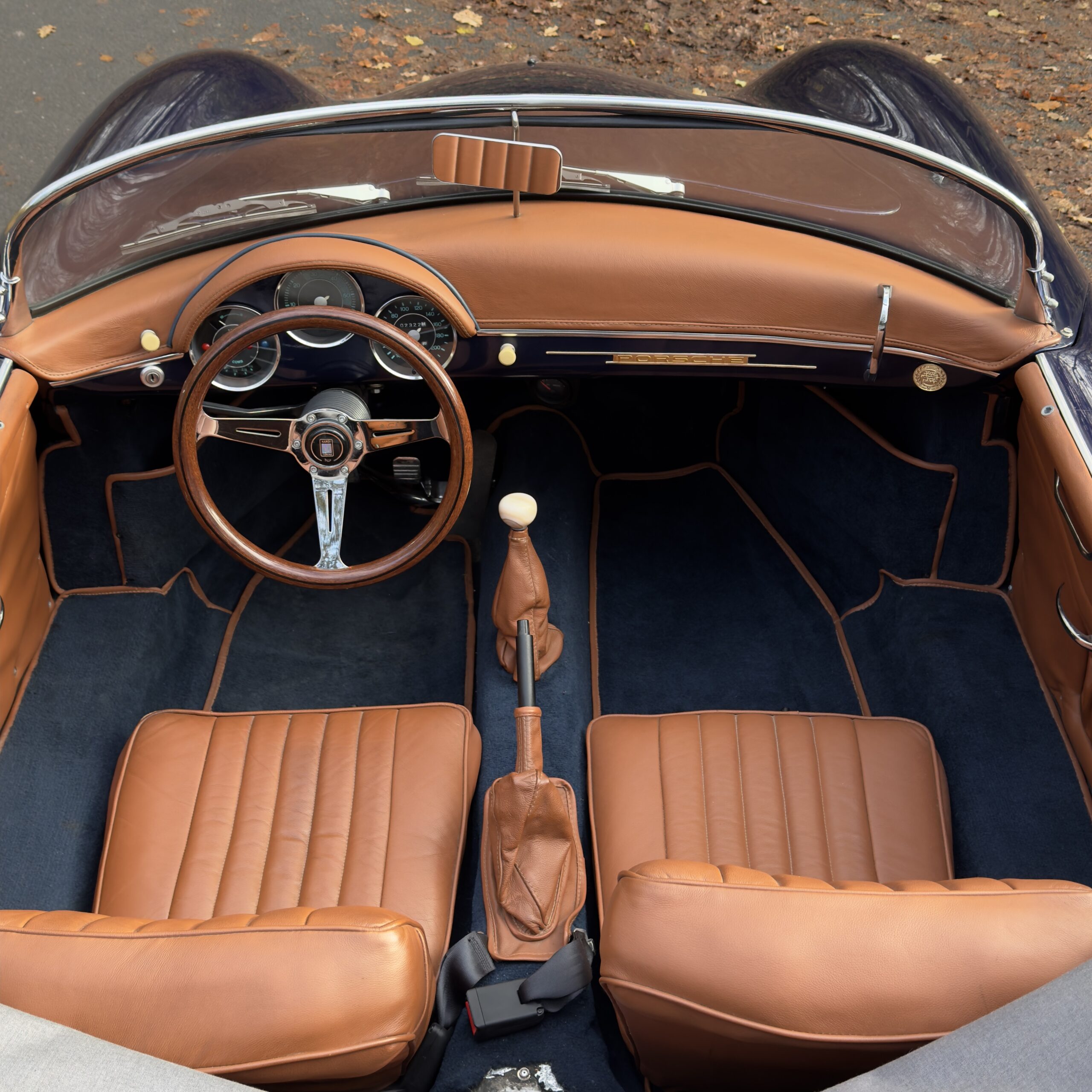 L’Atelier des 1000 a le plaisir de vous présenter cette élégante 356 Speedster Intermeccanica, proposée dans une configuration particulièrement désirable, associant une peinture midnight blue à un intérieur en cuir tan refait à neuf.
