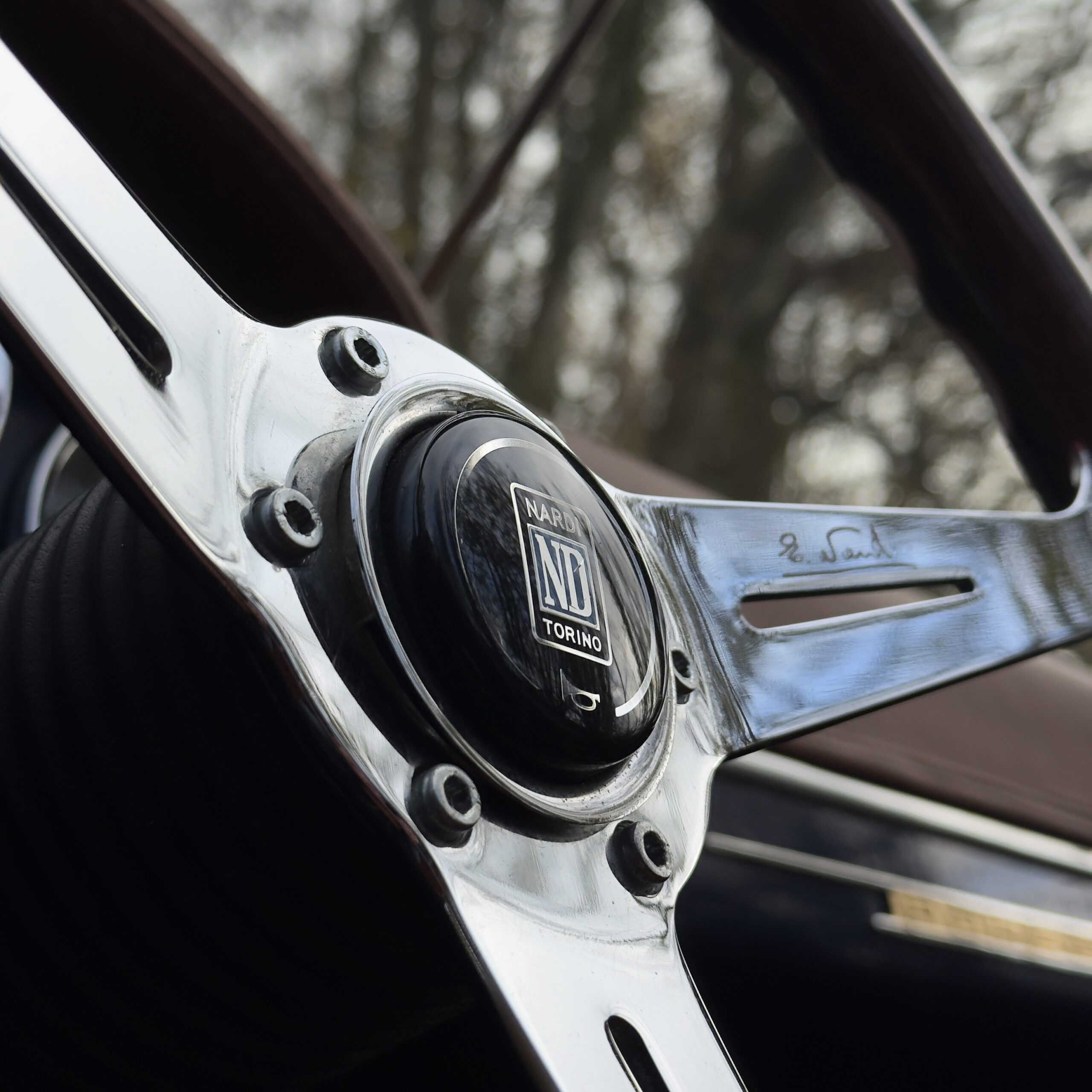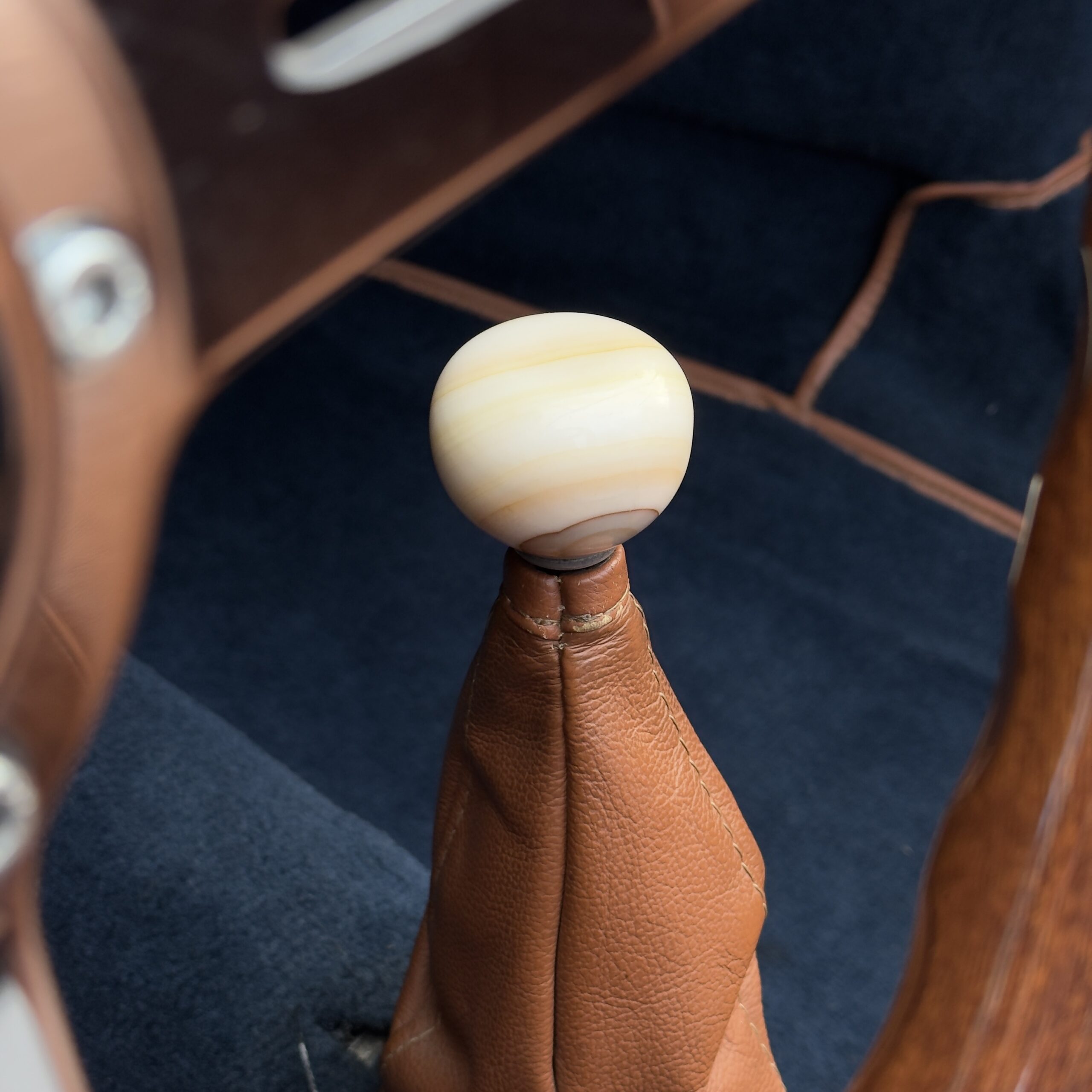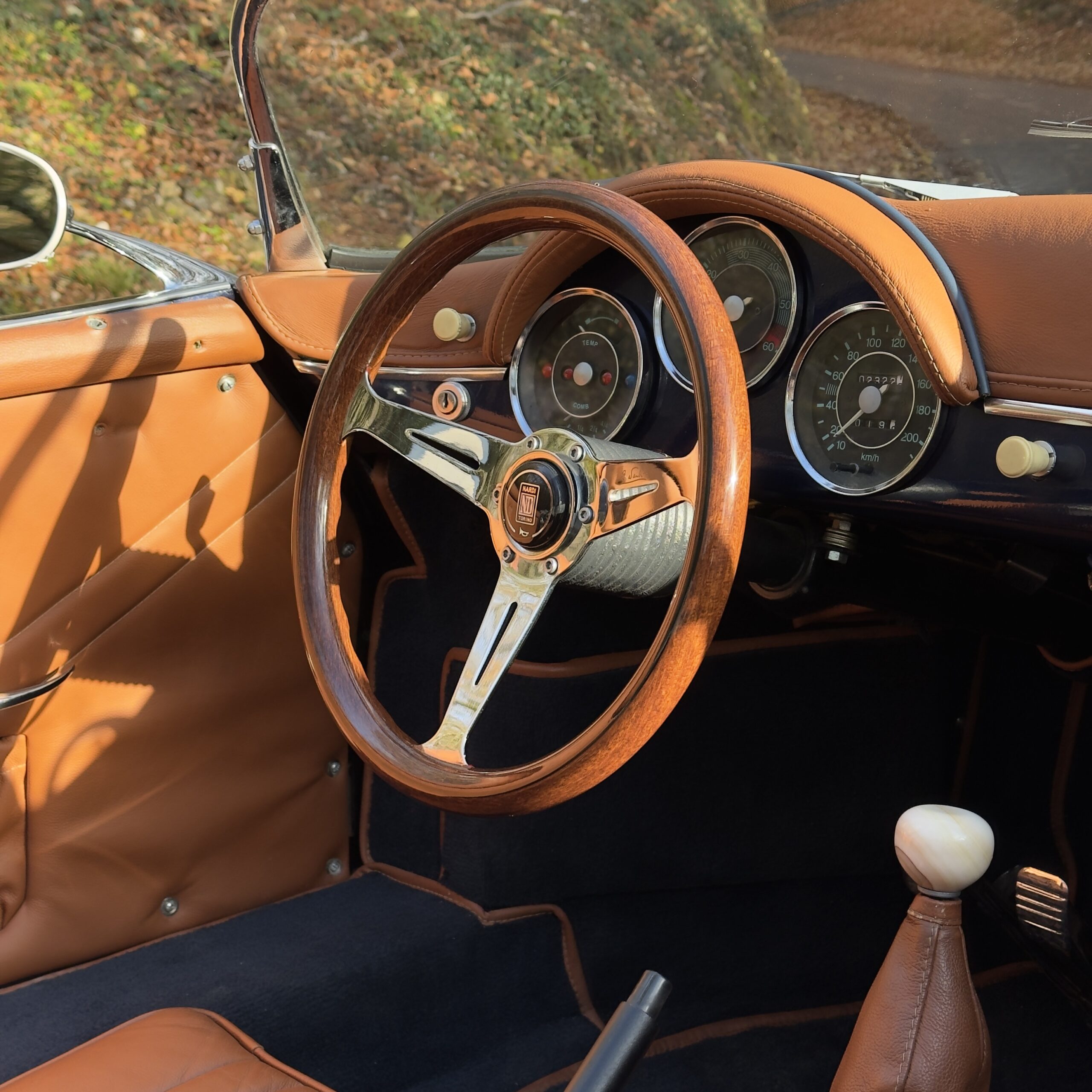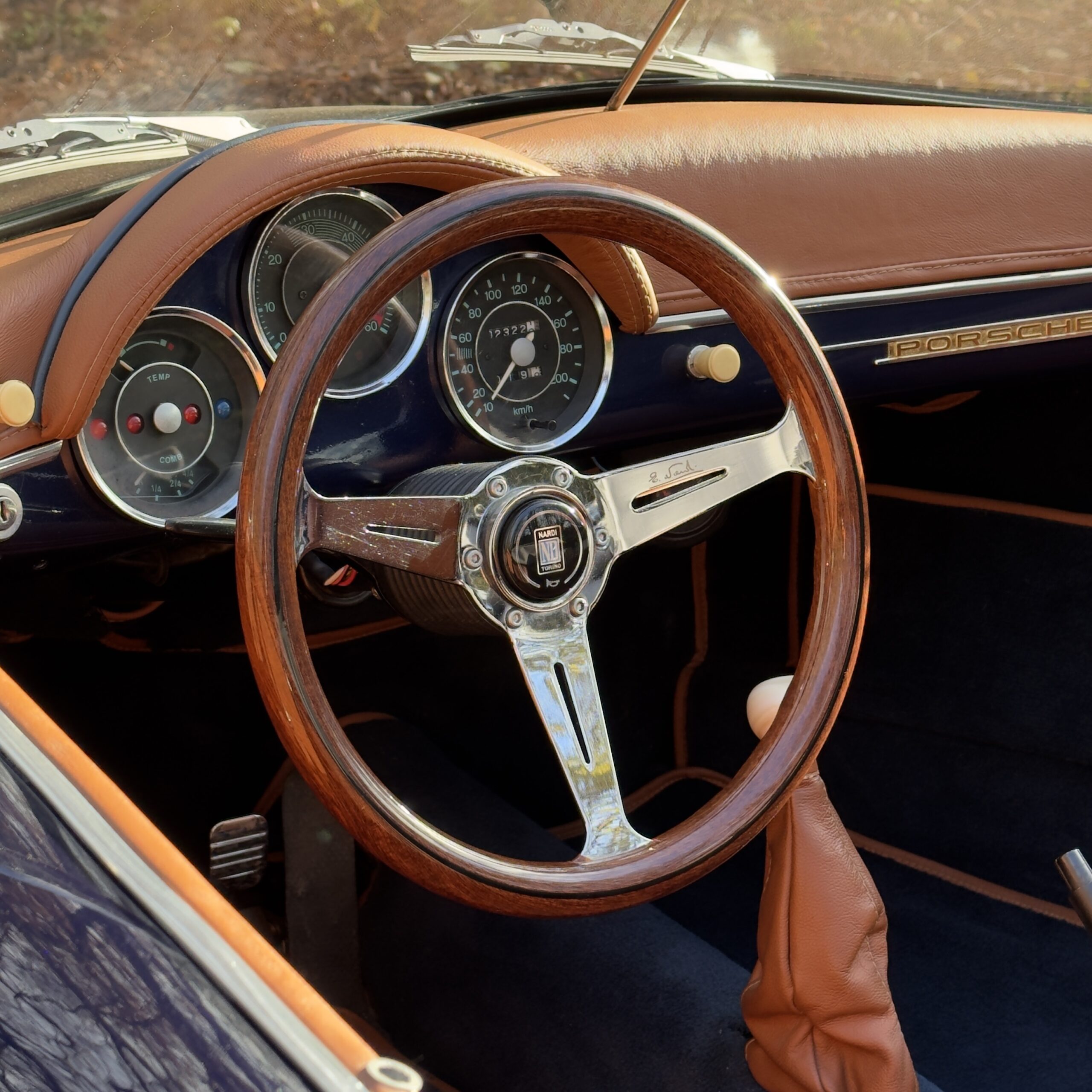 Les moquettes bleu avec passe poil marron assorties sont en excellent état également, et un volant bois Nardi vient apporté une touche sport-chic a cet habitacle.