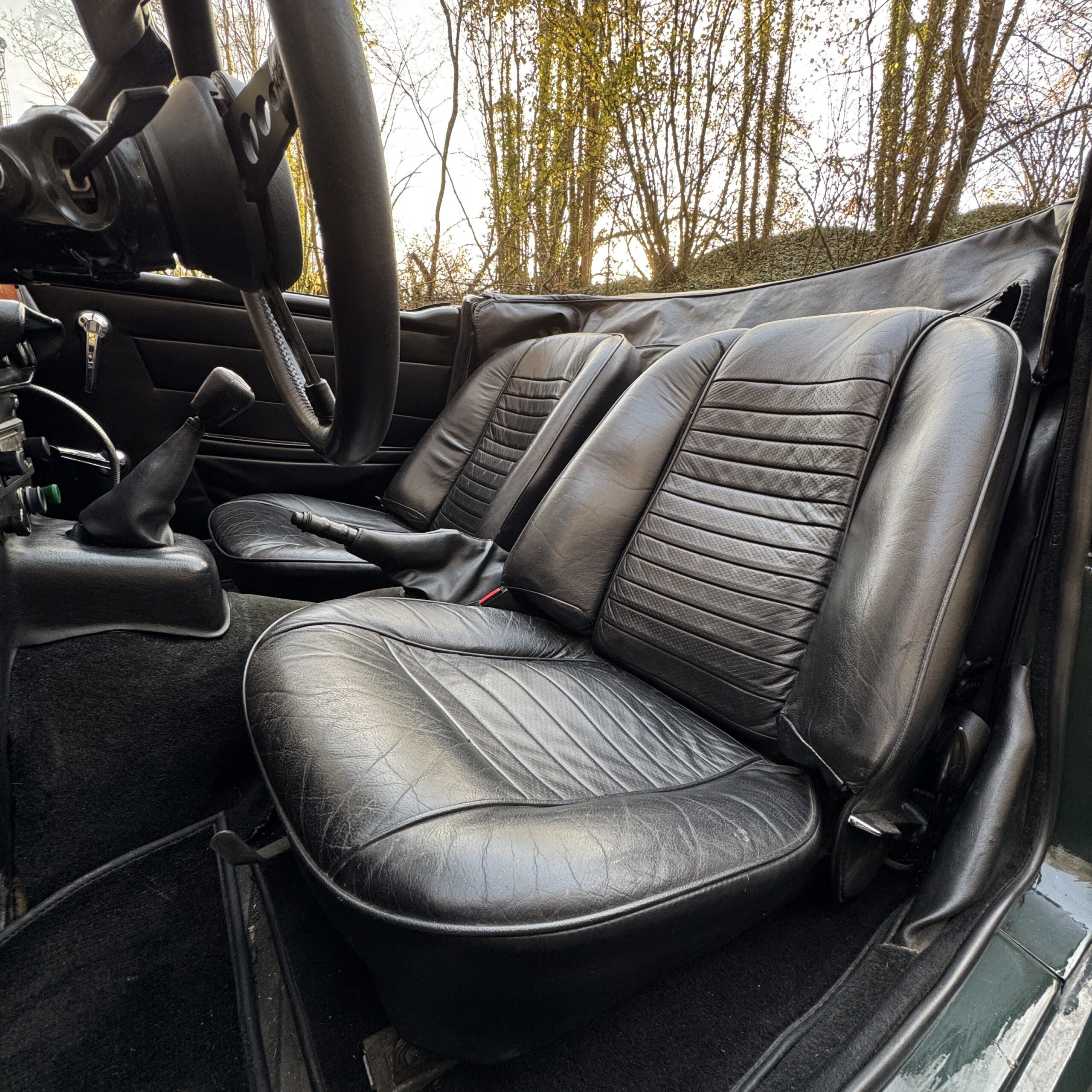 La sellerie en cuir véritable est en bel état et arbore une légère patine qui lui confère du charme.