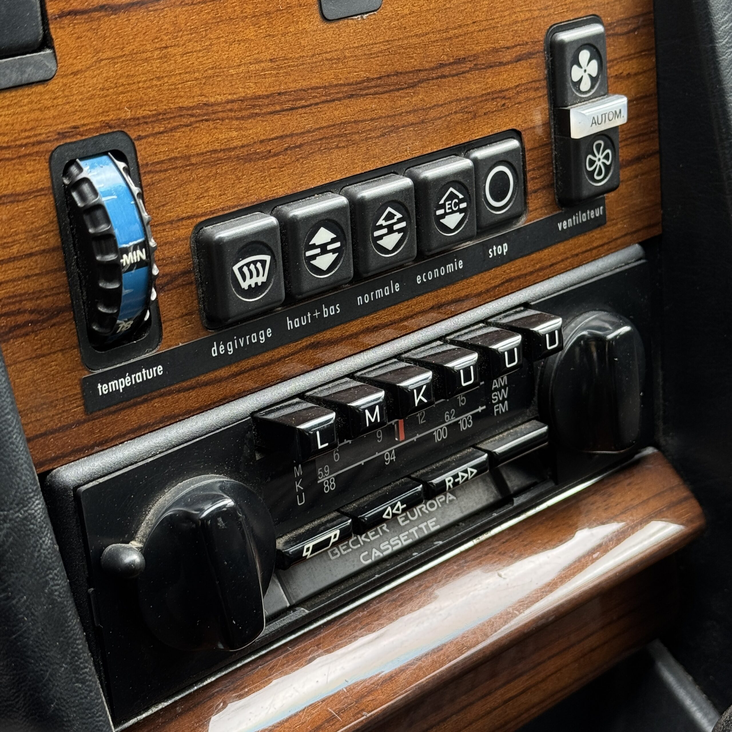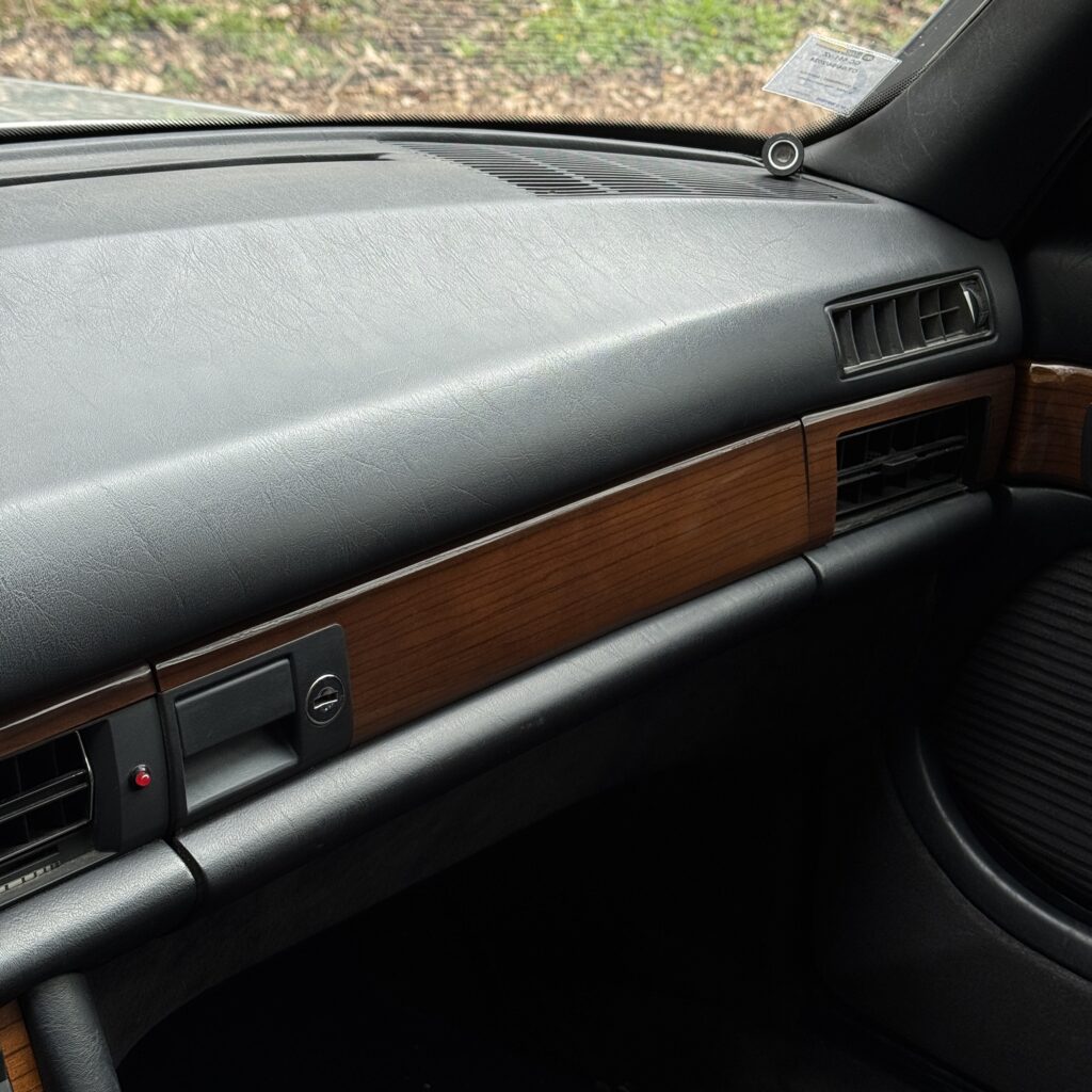 Le tableau de bord ainsi que les éléments en boiseries sont très bien conservés, témoignant du soin apporté à l’auto au fil du temps.