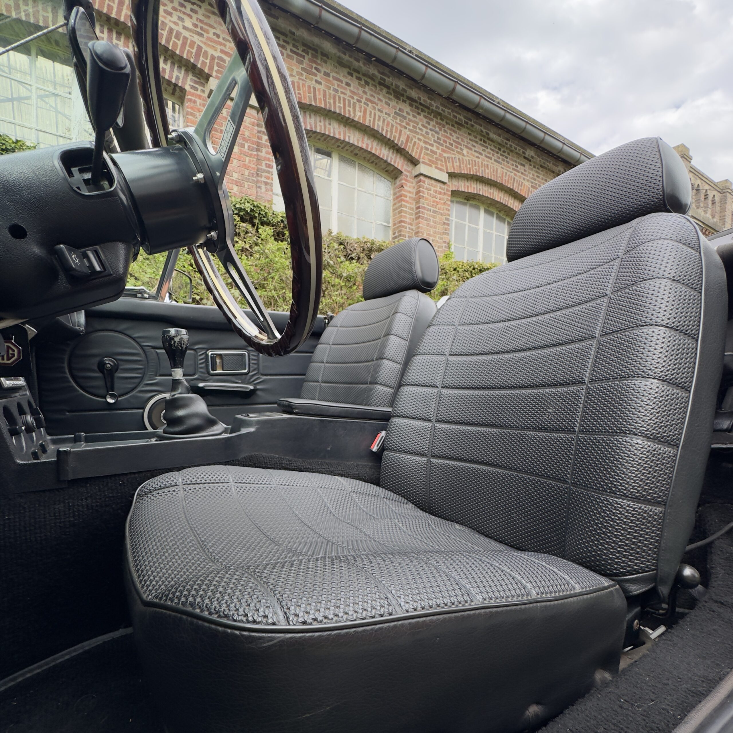 Sous le capot, le moteur fonctionne à merveille et profite d’améliorations discrètes mais pertinentes : couvre-culasse signé Peter Burgess, allumage électronique, admission sport, ajout d’un radiateur d’huile et remplacement récent de l’alternateur. Autant d’éléments qui renforcent sa fiabilité et assurent une conduite en toute sérénité.