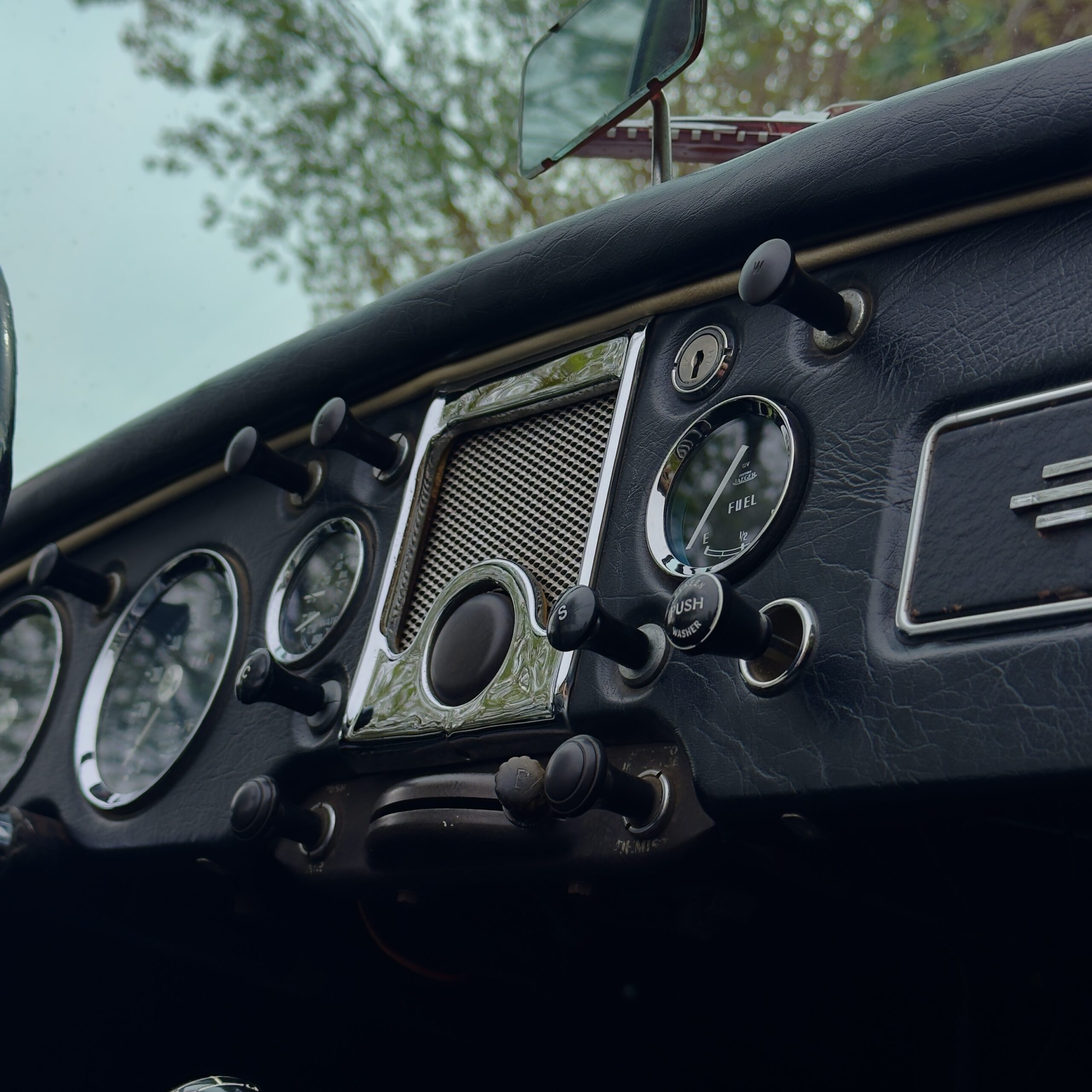 Le volant d’origine en Bakélite est présent et l’instrumentation fonctionne correctement. La jauge d'essence vient d'être remplacée. Le Hard-Top noir est en très bel état et fourni avec l'auto. L'armature de capote et la capote sont en bon état et ses Side screen sont présents .