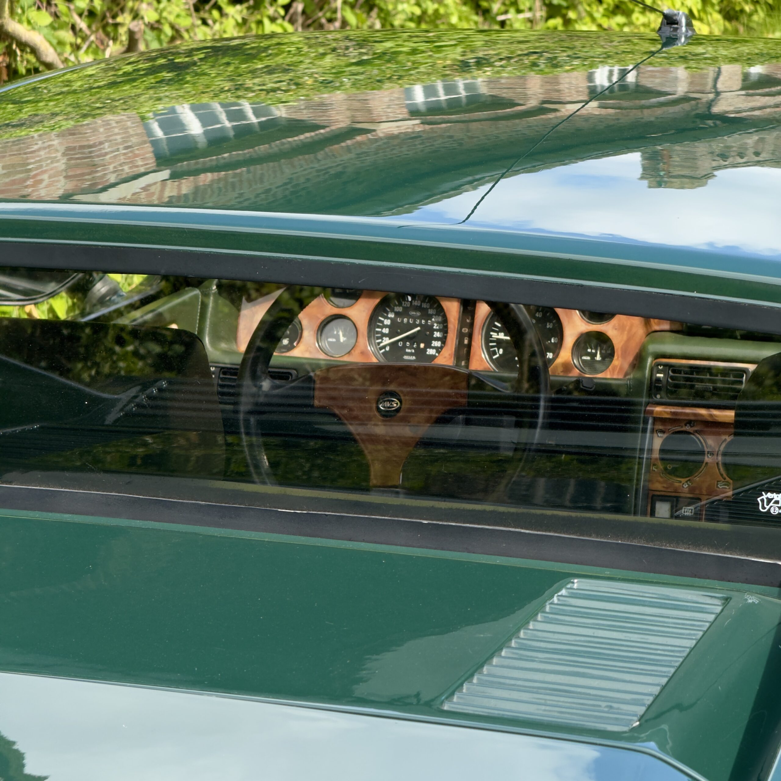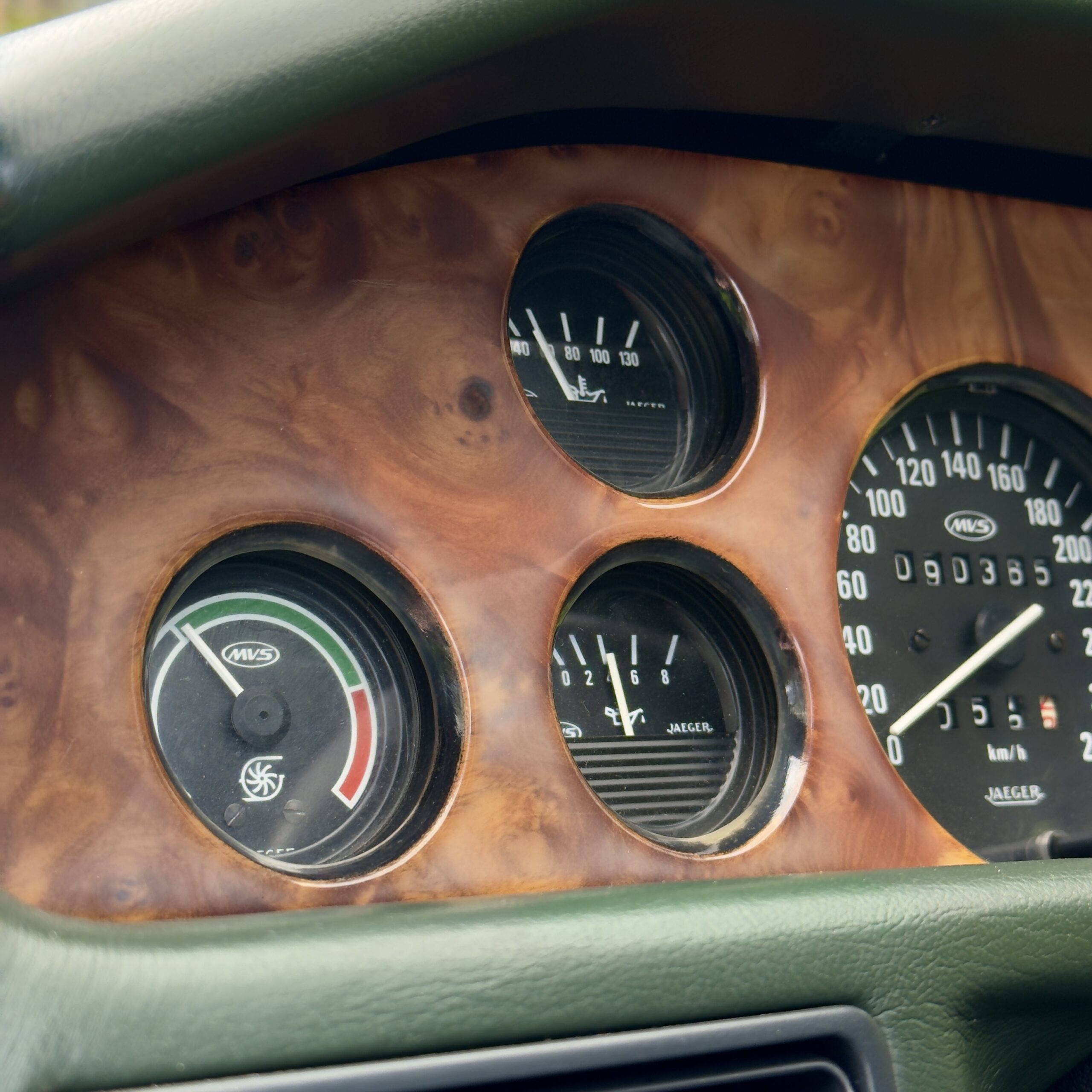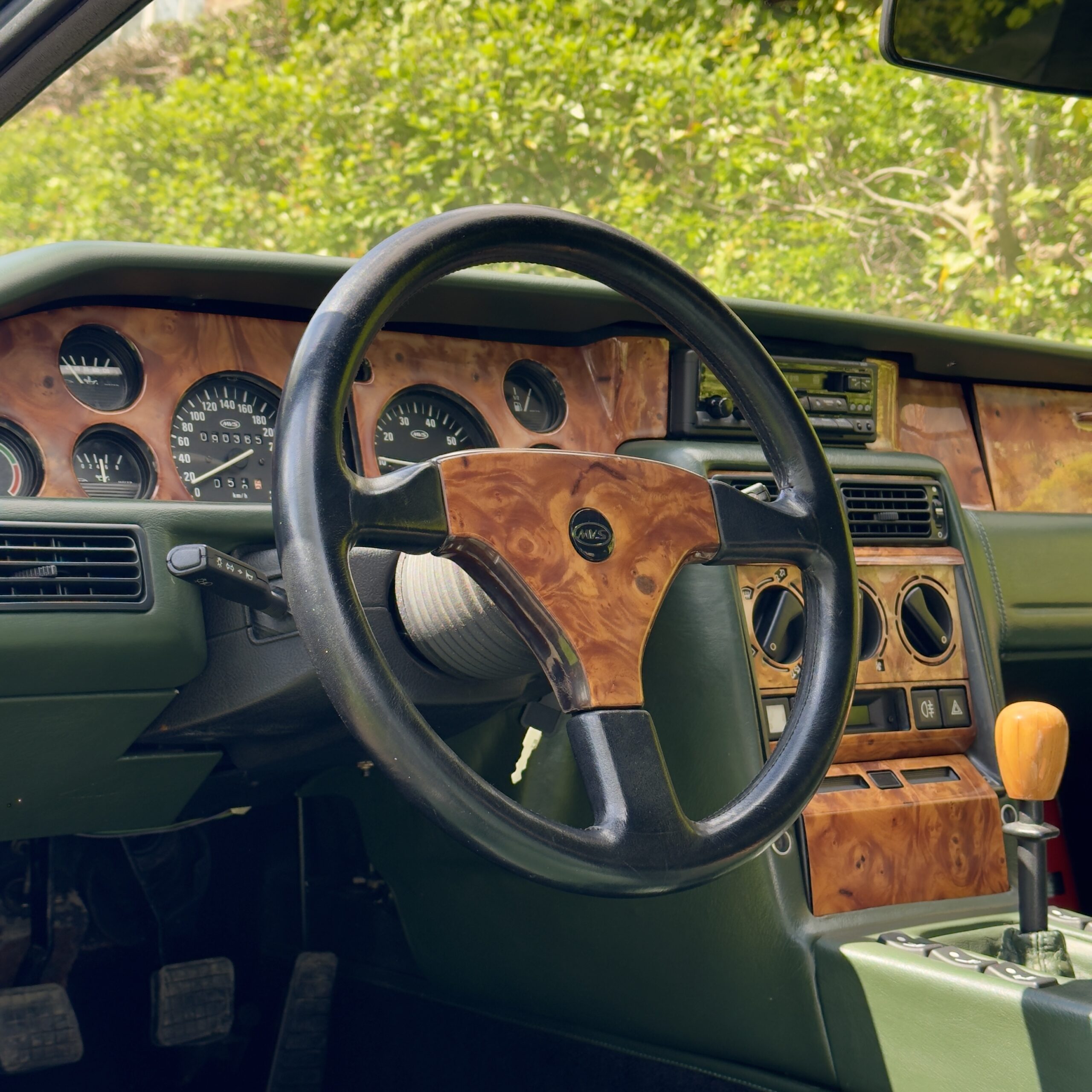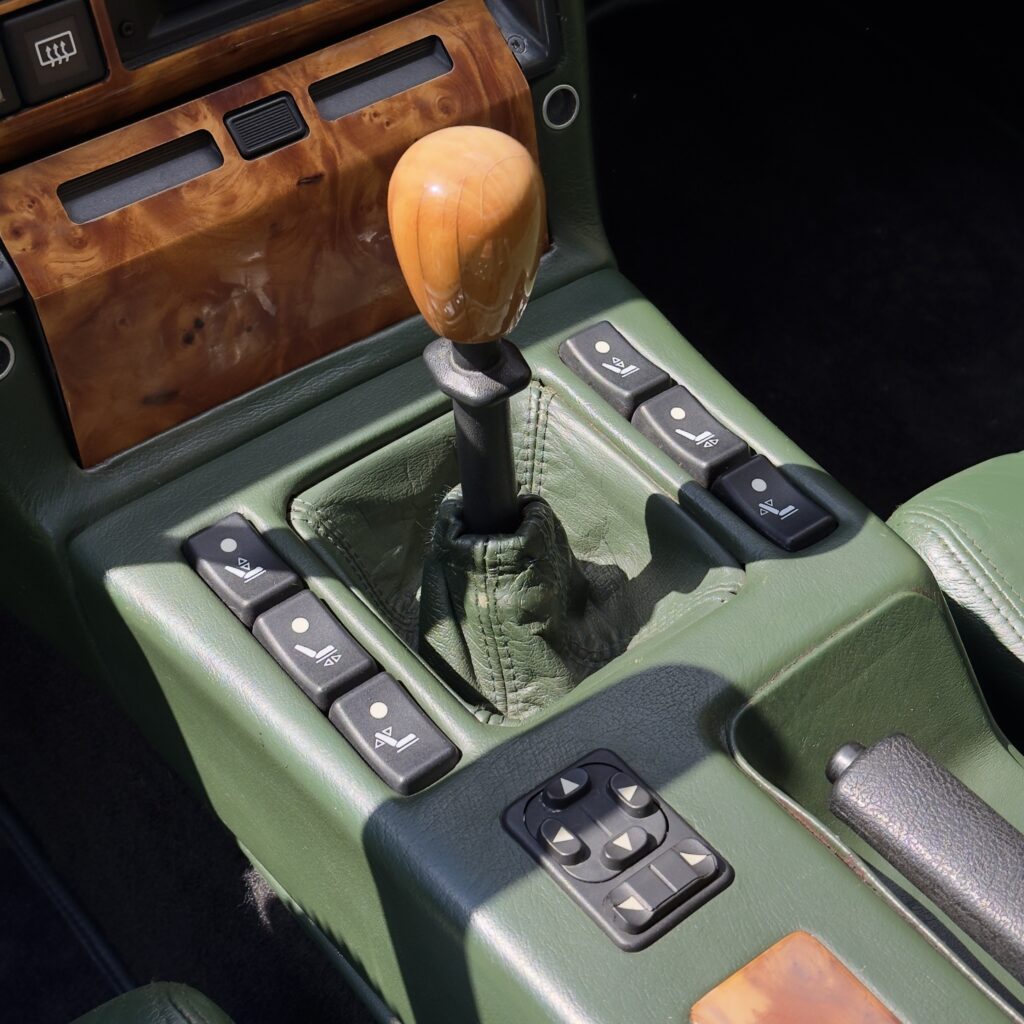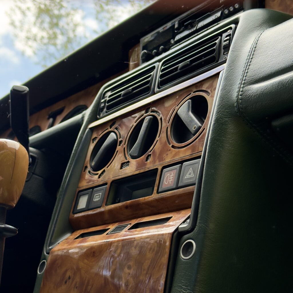 L’habitacle, typique des productions Venturi offre une ambiance unique. La sellerie en cuir connolly assortie est en très bel état, et les boiseries présentent une légère patine qui nous affectionnons particulièrement.