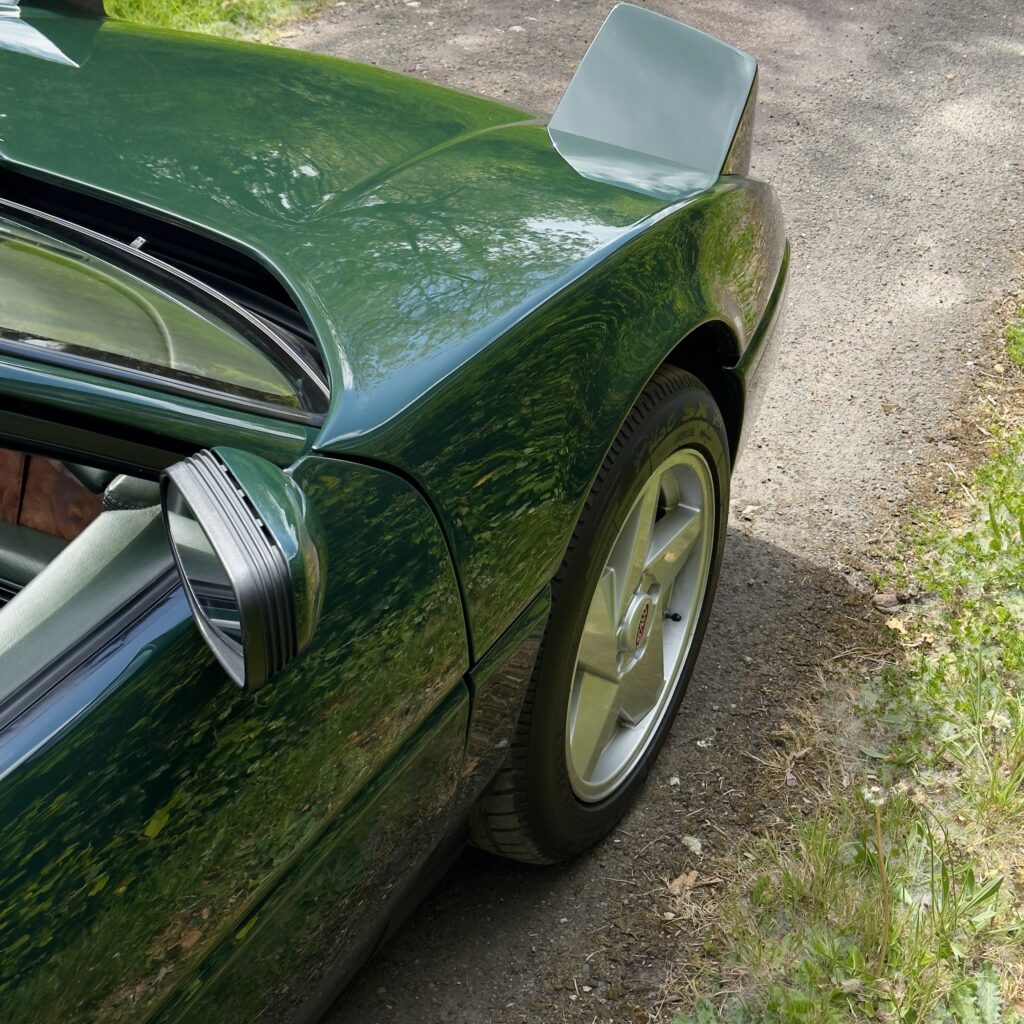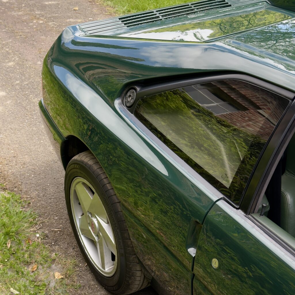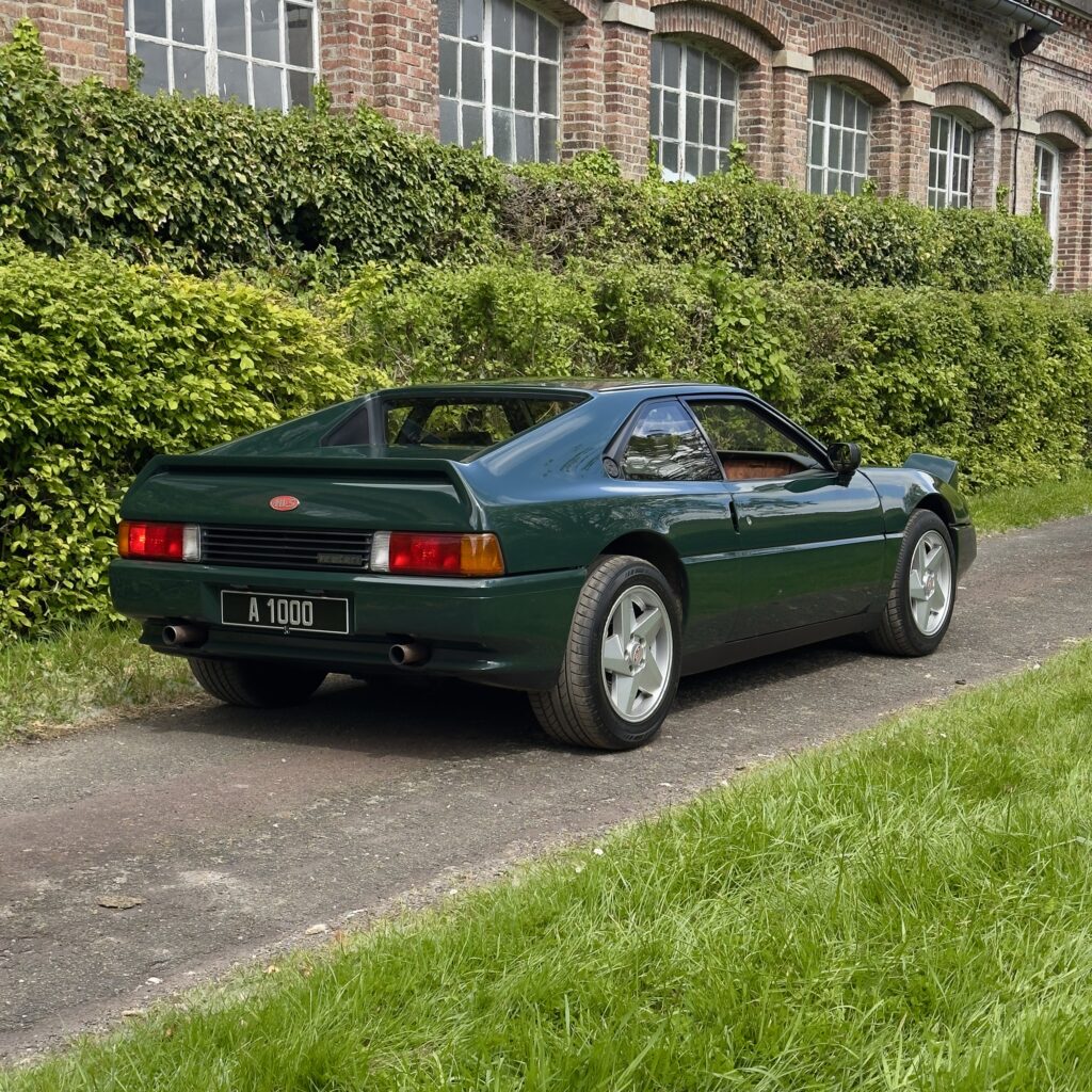L’atelier des 1000 vous propose à la vente ce rare coupé sportif MVS Venturi 200 Cup221, présenté ici dans une élégante teinte vert anglais avec intérieur cuir assorti.