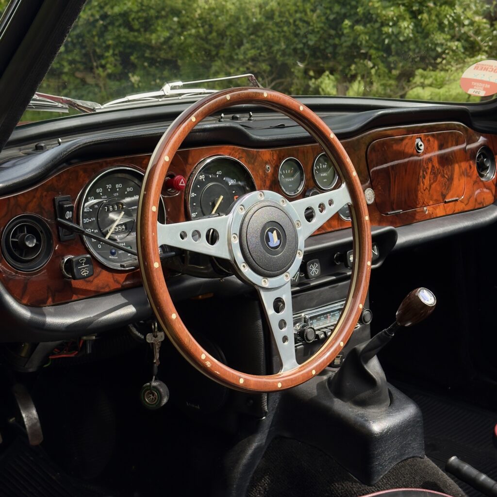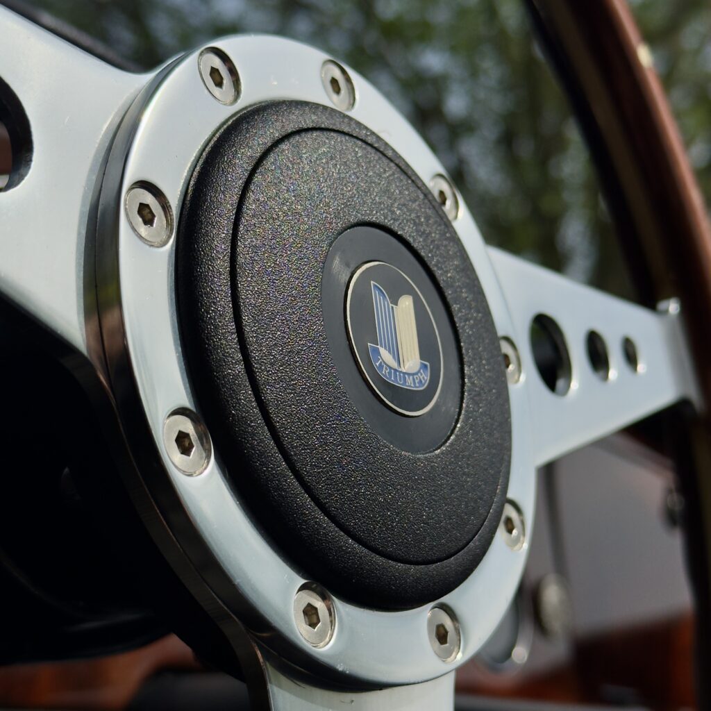 Les suspensions ont été revues récemment, les ressorts sont neufs et les amortisseurs ont été remplacés par des Spax, offrant à cette TR6 un comportement routier particulièrement plaisant.