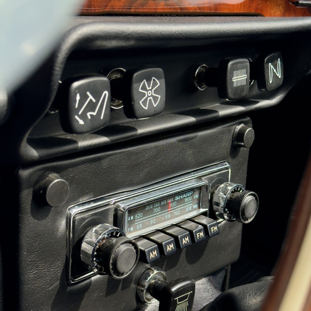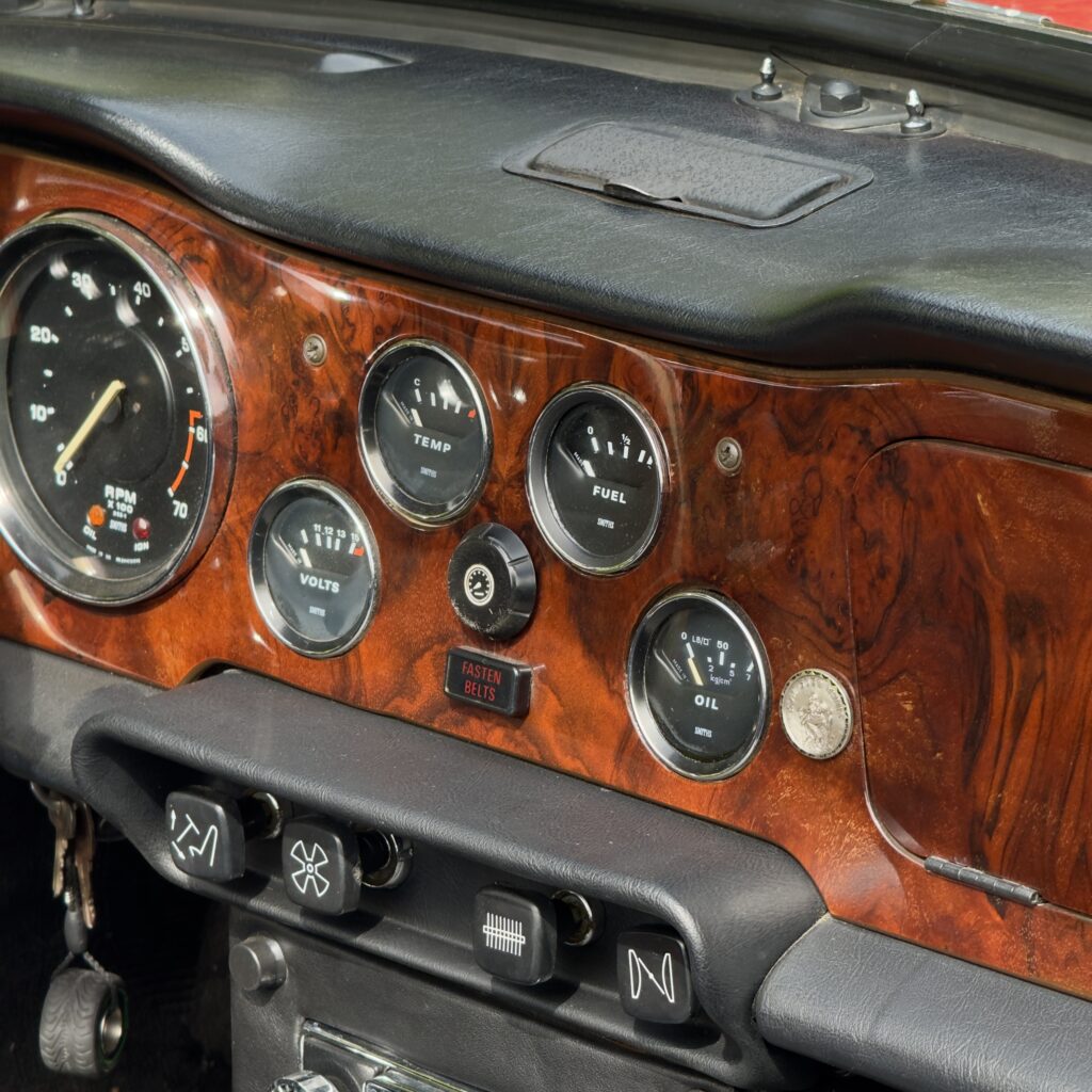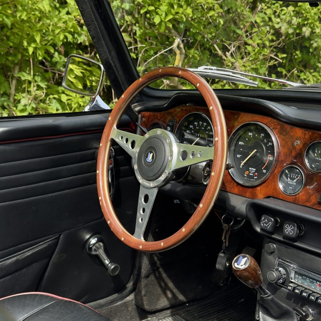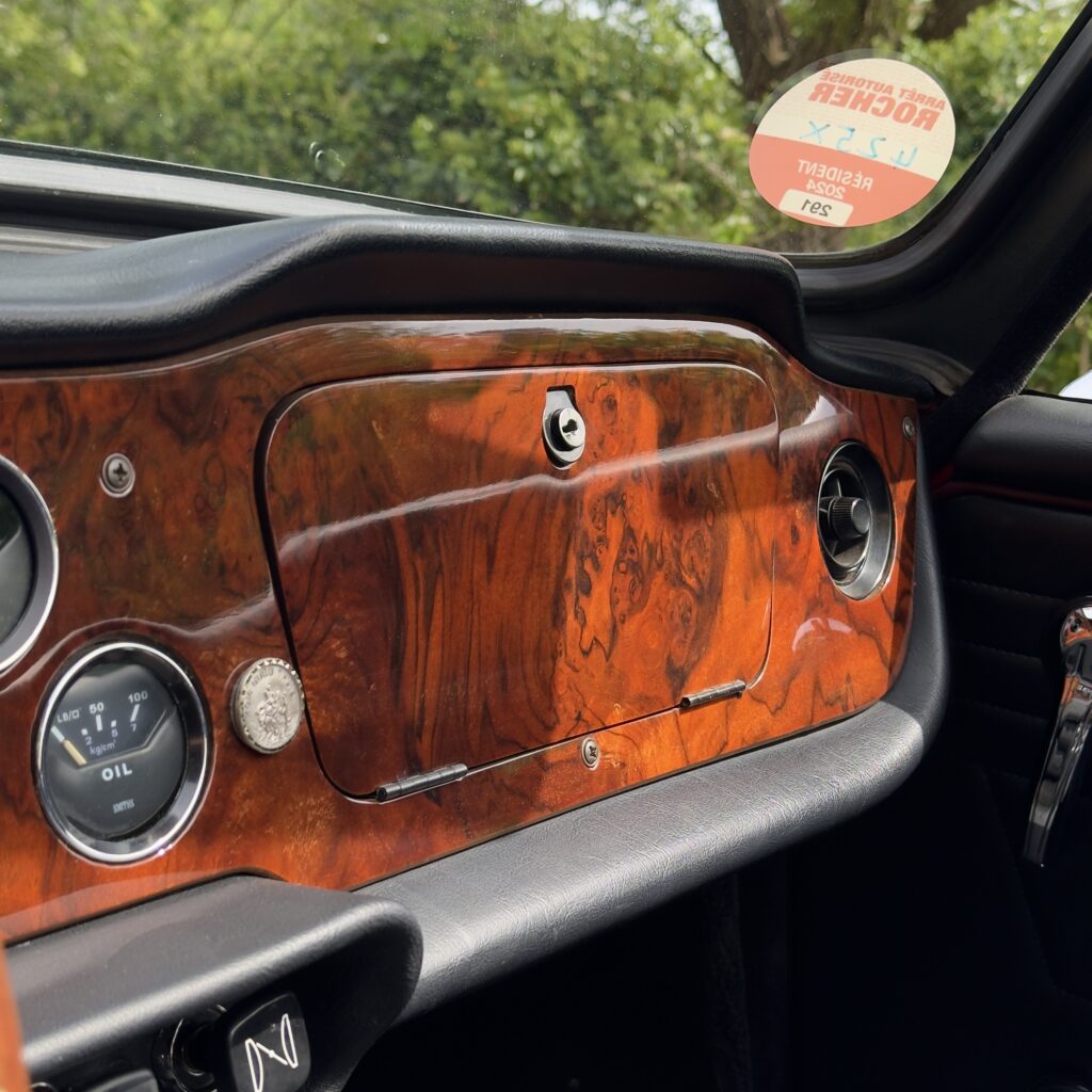 Le volant trois branches et la planche de bord en ronce de noyer sont parfaitement conservés, et l’instrumentation est pleinement fonctionnelle.