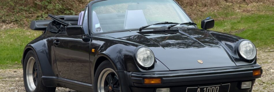 PORSCHE 930 3.3 Turbo Cabriolet- BV5 G50 FOR SALE – Nous consulter PRESENTATION L’Atelier des 1000 a le plaisir de vous proposer à la vente cette Porsche 930 3.3 Turbo Cabriolet « BV5 », millésime 1989, dans une configuration unique associant une teinte Noir Satin Métallisé à un intérieur exclusif en cuir Lilas, assorti à une capote …